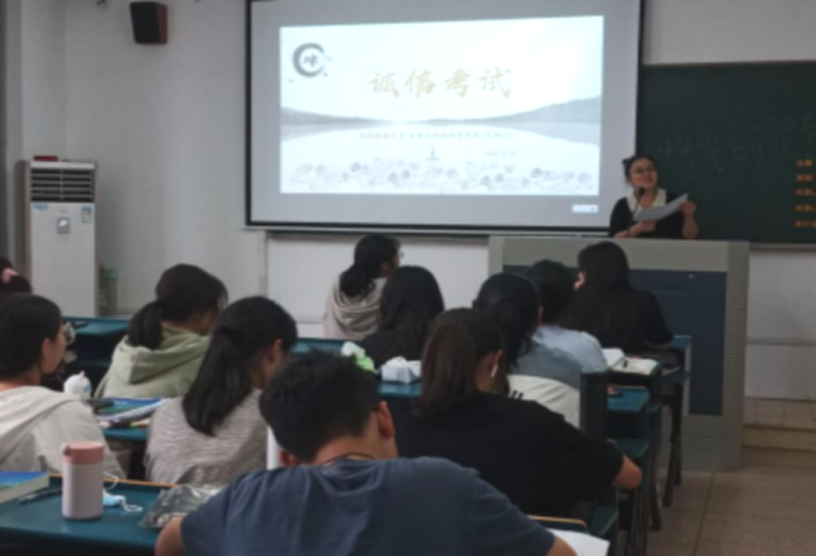 国产a片 还组织学生自愿签订诚信考试承诺书,认真学习了《国产a片 学生违纪处分规定》和《国产a片 考场规则》,引导同学们积极践行社会主义核心价值观,帮助同学熟悉相关规章制度,为期末考试期间的良好考场秩序和考试风气奠定思想基础。并设立“诚信考场”,让同学们从自身出发,严肃对待考试,遵守学院及学校的考试规章制度,着重强调考试作弊高压线不可踩。