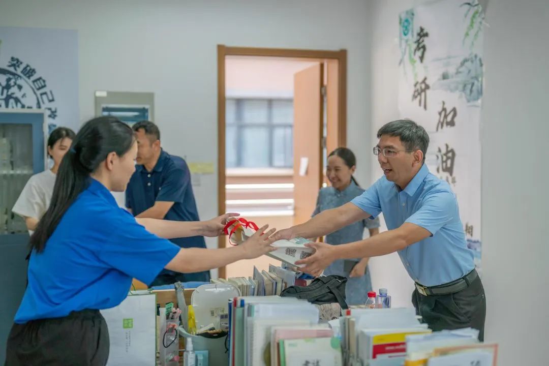 学院党委书记张立明代表学院领导叮嘱同学们保持良好的学习状态,在紧张备考的同时,注意身体健康,合理安排学习进度。同时,他提醒同学们暑期留宿期间要注意避暑防暑,关注疫情防控,确保个人安全。学院党政班子还为同学们分别送上慰问品。
