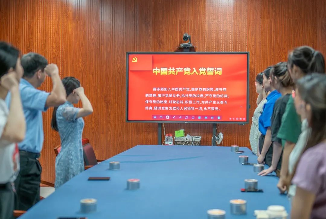 在中国共产党成立101周年之际,为提升新入党党员党性修养,增强其身份意识、责任意识、宗旨意识,6月27日,国产a片 在慎园为新入党党员同过集体政治生日,学院党委书记张立明、党委副书记王倩、本科生第一党支部书记陈好和新入党的学生党员代表参加。