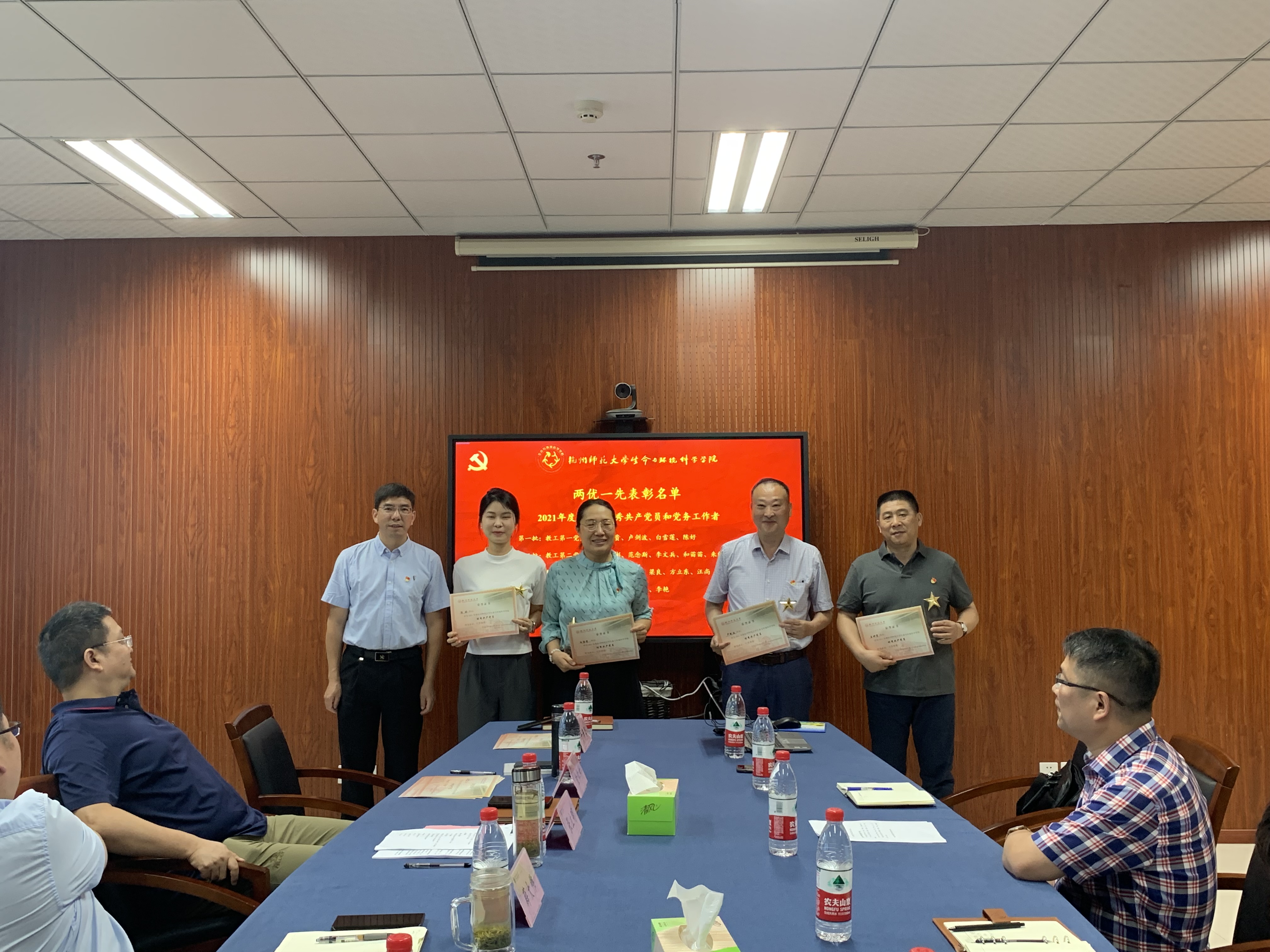 后记:这次表彰活动是学院庆祝建党101周年系列活动之一,学院先后进行了一次“不忘初心跟党走”主题党日、过一次集体“政治生日”、开讲一堂“红领筑梦 践时代使命”专题党课、走访慰问一批困难党员和老党员、开展一次志愿服务、推进一批党支部标准化建设达标验收、开展一次基层党组织和党员队伍状况统计。