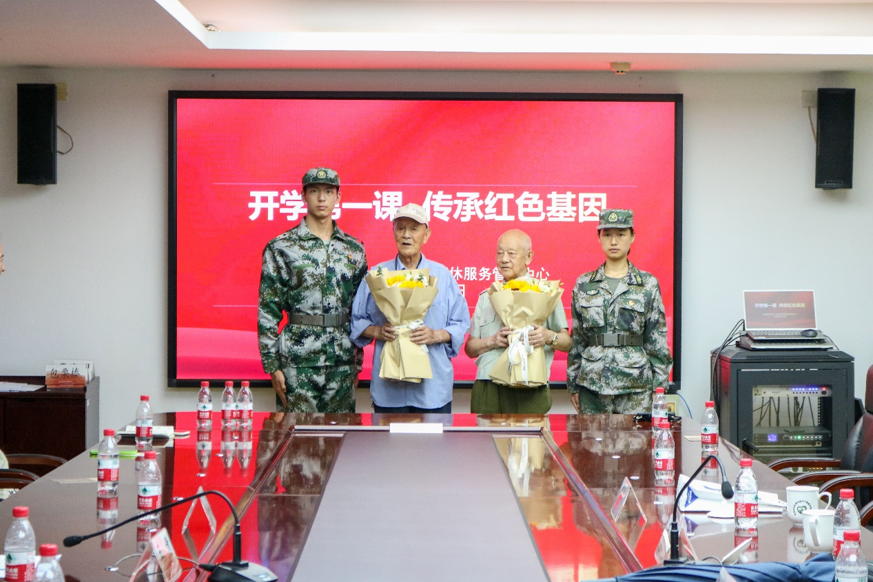 2022年9月2日,国产a片 师生代表前往杭州军休所看望抗美援朝老兵王甲臣、袁怡柏,两位老战士为大家上了一堂生动的党课。学院党委副书记王倩,组织员、学生支部书记陈好,教工支部书记秦诚及学生党团员、入党积极分子、退伍学生共同聆听了此次党课。