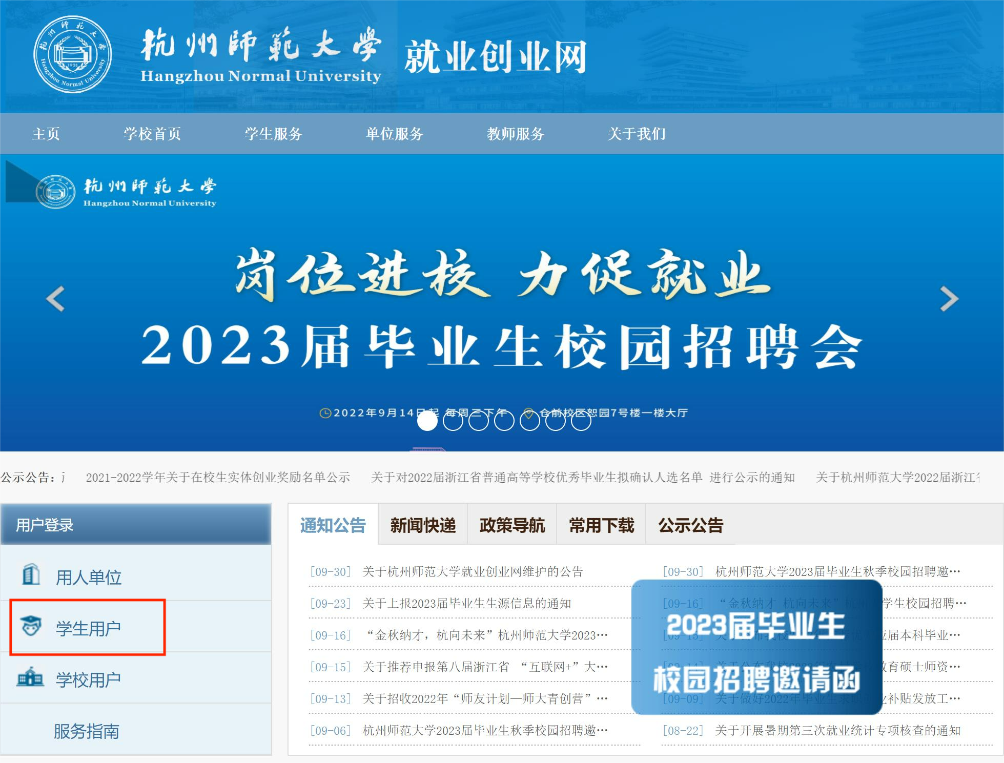 毕业生前往国产a片 就业创业网,点击“用户登录”“学生用户”,使用统一身份认证账号密码进行登录,进入“学生中心”平台。