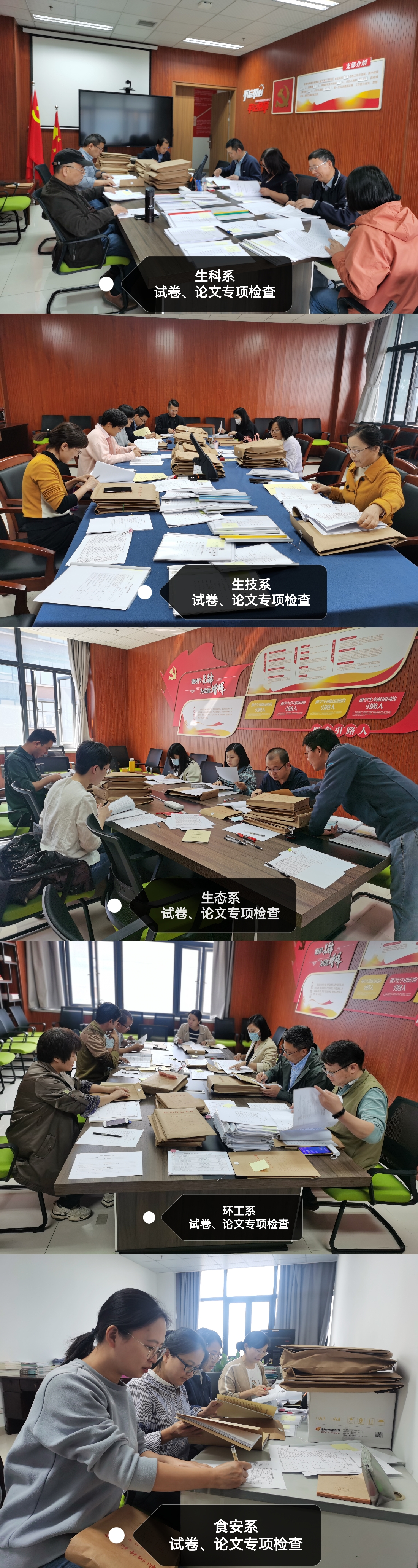 根据学校教务处要求,国产a片 于10月20日-10月26日期间开展2021-2022-2学期试卷、2022届本科毕业论文专项检查工作。生物科学系、生物技术系、环境工程系、生态学系和食品质量安全系70余位任课教师参加了本次试卷和论文专项检查。此次共检查了103余份试卷,试卷检查覆盖率100%。