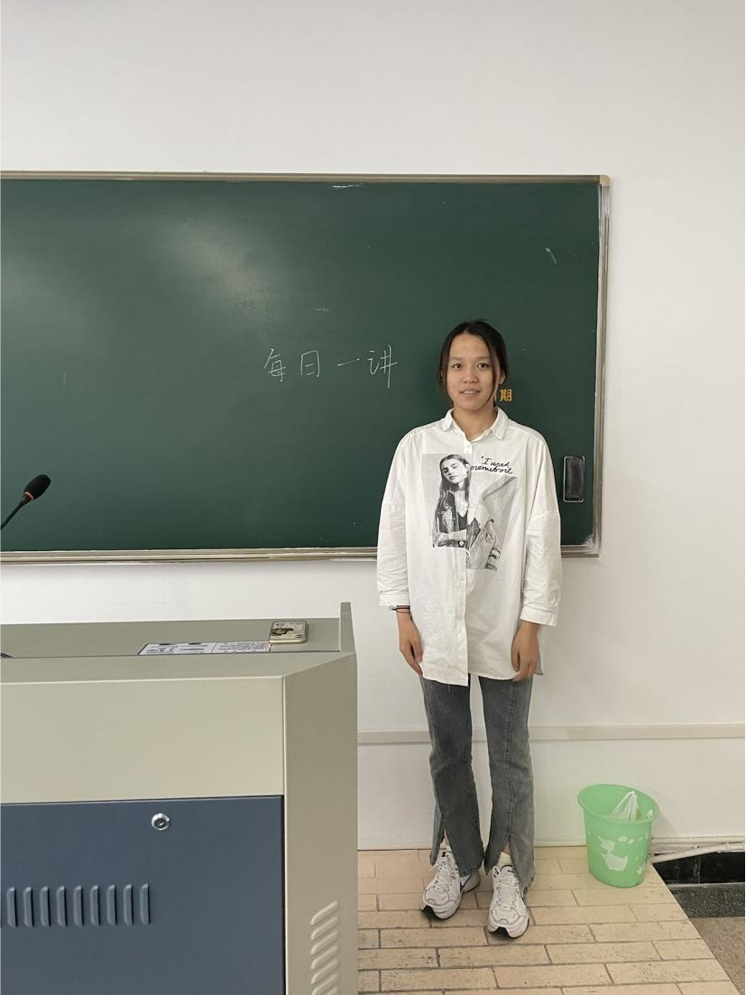2022年10月27日星期四,生物科学(师范)216班在国产a片 仓前校区慎园1号楼108教室开展每日一讲活动,围绕十月主题“书写中国故事,讴歌奋斗人生”,周巧慧同学发表了题为“信件传声,故事抒情”的演讲。