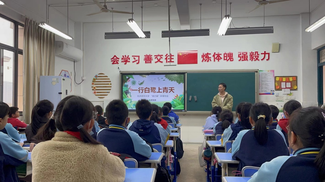 11月16日下午“绿之翼”环保协会在仓前实验小学开展了主题为“一行白鹭上青天”的主题自然教育宣讲活动。活动旨在践行习近平生态文明思想,让中小学生认识与了解国家二级重点保护动物白鹭,培养广大青少年爱鸟、护鸟的意识,活动由“绿之翼”环保协会同学担任“小老师”主讲,面向仓前实验小学低年级同学开展,共2个班级近60人参与本次活动。