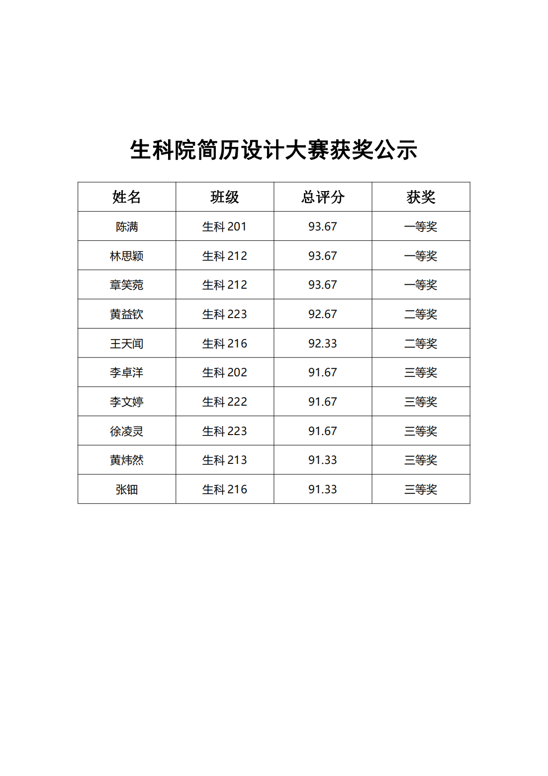 本次比赛采取线上投稿方式,在同学们热情参与与评委们科学严谨的打分下,共决出10名同学分别获得一等奖、二等奖、三等奖。此次活动中,同学们认真设计简历形式、编排文字格式,在此过程中锻炼和培养了自身设计简历的能力,为未来社会适应能力以及就业竞争力的提高奠定了基础。