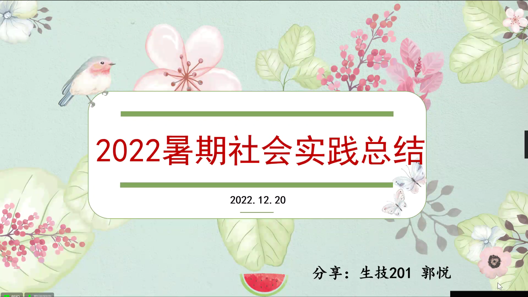 生命与环境科学学院B.D.服务社“环保科普”宣传小分队团队负责人郭悦同学介绍了社会实践的基本要求和实践流程,并分享了自己参与两次社会实践以来获得的经验和心得体会。
