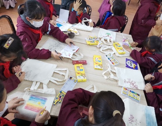 活动现场,社团成员们分别开展了“旧物新出路”、布袋的“二次加工”、重现美丽“地球”等三项植树节趣味主题活动。社区居民们通过交换、捐赠多余的旧物为他人传递温暖;小朋友们则是将自己的创意通过多彩的颜料挥洒在布袋之上唤起大家减少使用塑料袋的意识,或用自己的双手制作环保生态瓶,传递着一颗颗保护生态的心。
