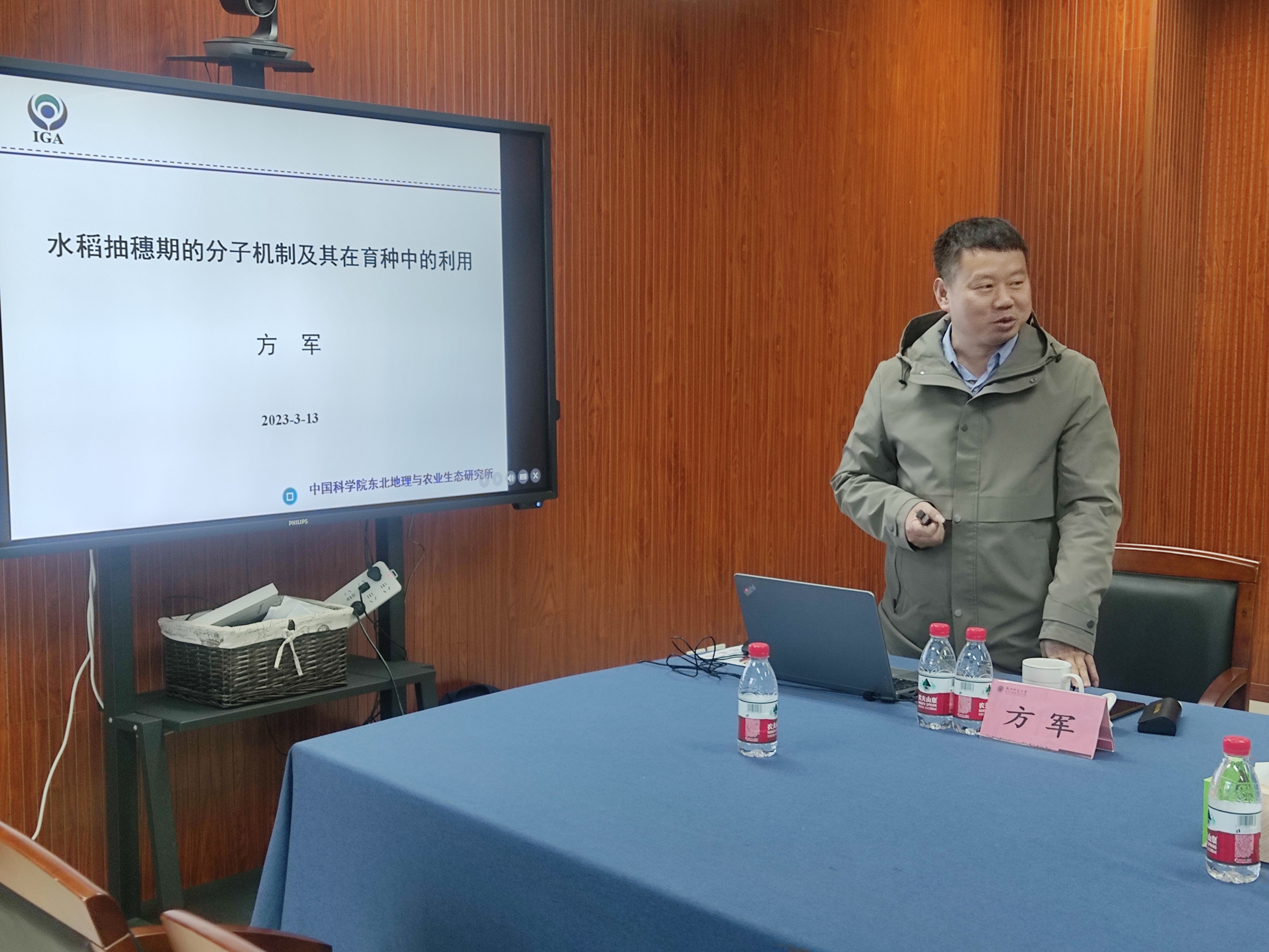 3月13日上午,国产a片 在慎园15-313会议室举行了2023年第4期生科撷英讲坛,中国科学院东北地理与农业生态研究所方军研究员,应邀来国产a片 为师生做了题为“水稻抽穗期的分子机制及其在育种中的应用”学术报告。讲坛由薛大伟院长主持,植物研究方向的师生参加本次讲坛。