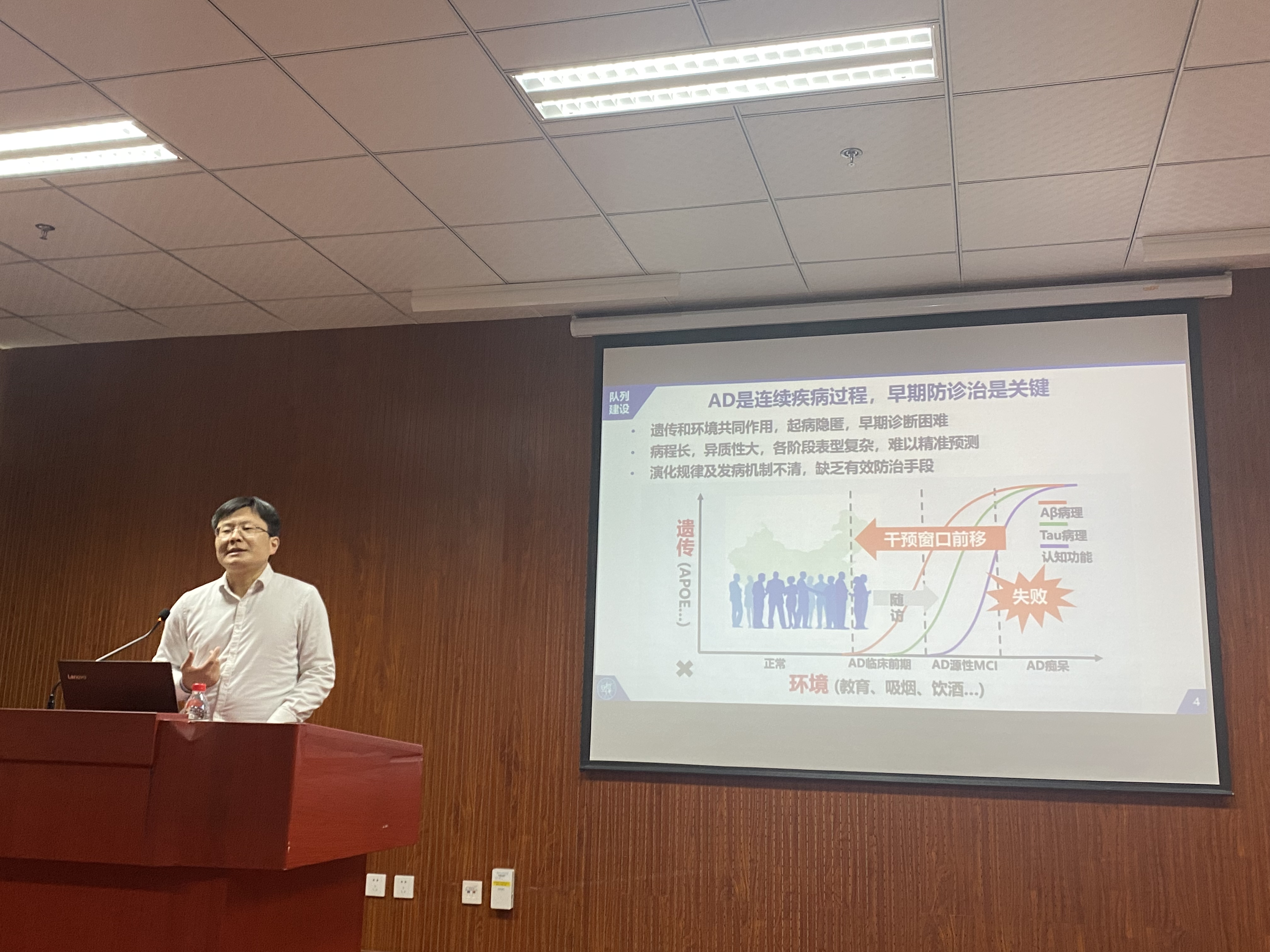 会上,郁金泰教授提到阿尔茨海默病(Alzheitauer disease, AD)已成为严重危害国人健康的重大疾病,而高质量大型衰老队列是AD早期防治诊断的关键。郁教授详细介绍了他们团队的研究成果,通过AD队列研究绘制危险因素图谱,制定AD预防方案,发现遵循该方案控制风险因素有望减少47%以上AD发生。此外,郁教授还详细介绍了AD早期生物标志物血浆GFAP,AD风险基因FAM171A2、PARL及其易感机制。郁教授指出,Aβ级联瀑布假说仍然是目前AD发病的主流假说,Aβ单克隆抗体可以靶向清除沉积的Aβ斑块,可以延缓AD进展,其牵头的Aβ单抗相关药物已进入全国III期多中心临床试验。在不久的将来,有望进入可防可治的新时代!