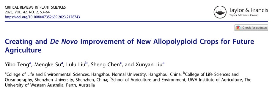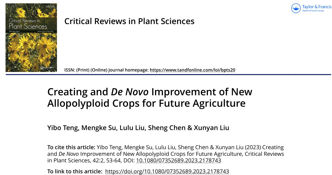 近日,生命与环境科学学院刘训言副教授在植物科学领域知名期刊Critical Reviews in Plant Sciences发表题为Creating and De novo improvement of new allopolyploid crops for future agriculture的专题综述文章。Critical Reviews in Plant Sciences(2022影响因子:6.289,5年影响因子:9.078)创刊于1983年,由TAYLOR & FRANCIS INC出版商出版,收稿方向涵盖生物—植物科学全领域,行业细分领域中学术影响力较大,专业度认可很高。