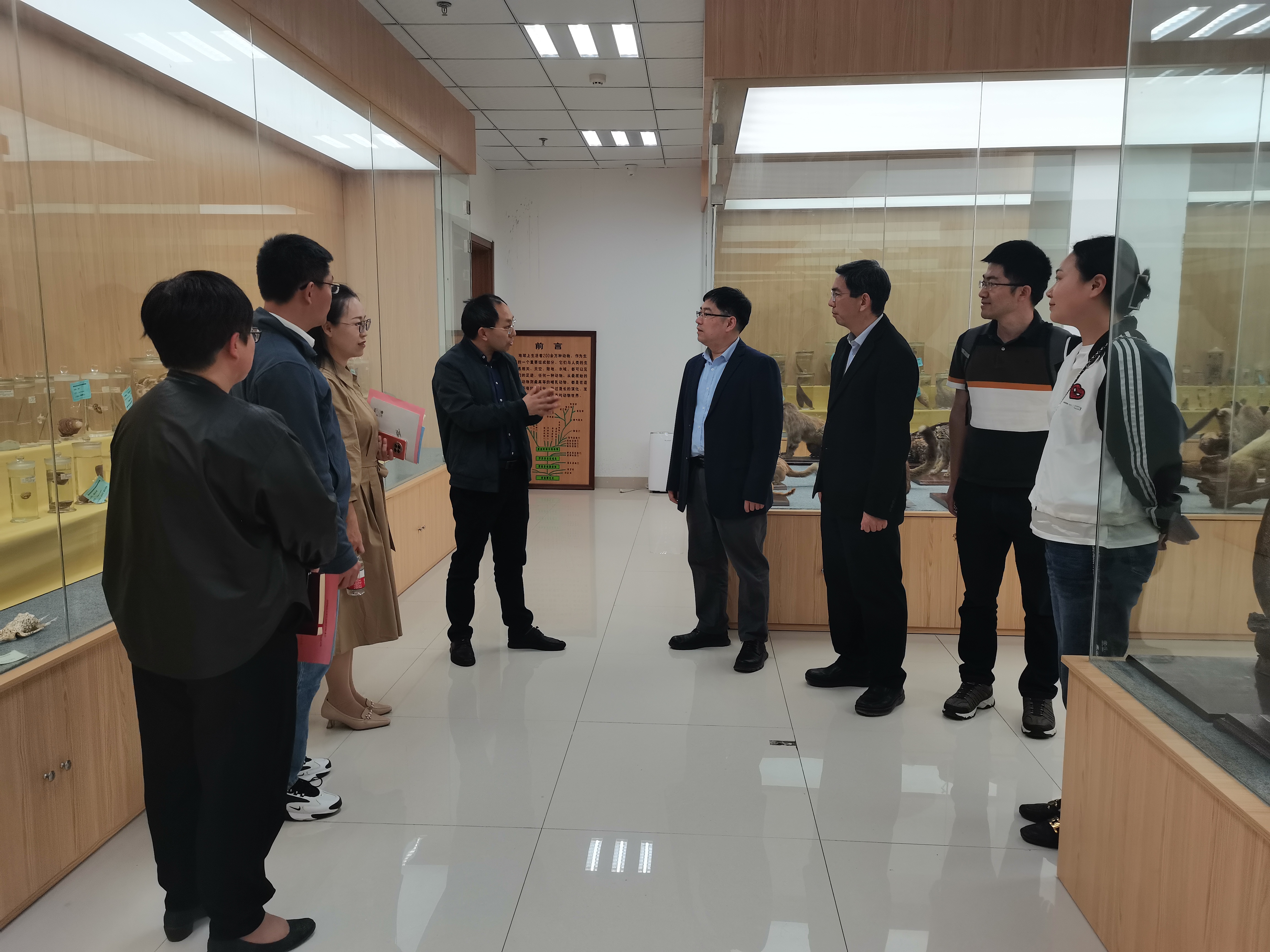 薛大伟院长为甘小洪院长一行介绍了学院历史、学科与学位点建设、师资队伍、教学工作、人才培养等情况。甘小洪院长介绍了西华师大国产a片 相关情况。双方围绕一流学科建设、师范认证、学生培养等方面展开了深入交流和讨论,并明确了合作意向和合作方向。随后,甘小洪副院长一行参观了国产a片 动物标本馆和实验室等。