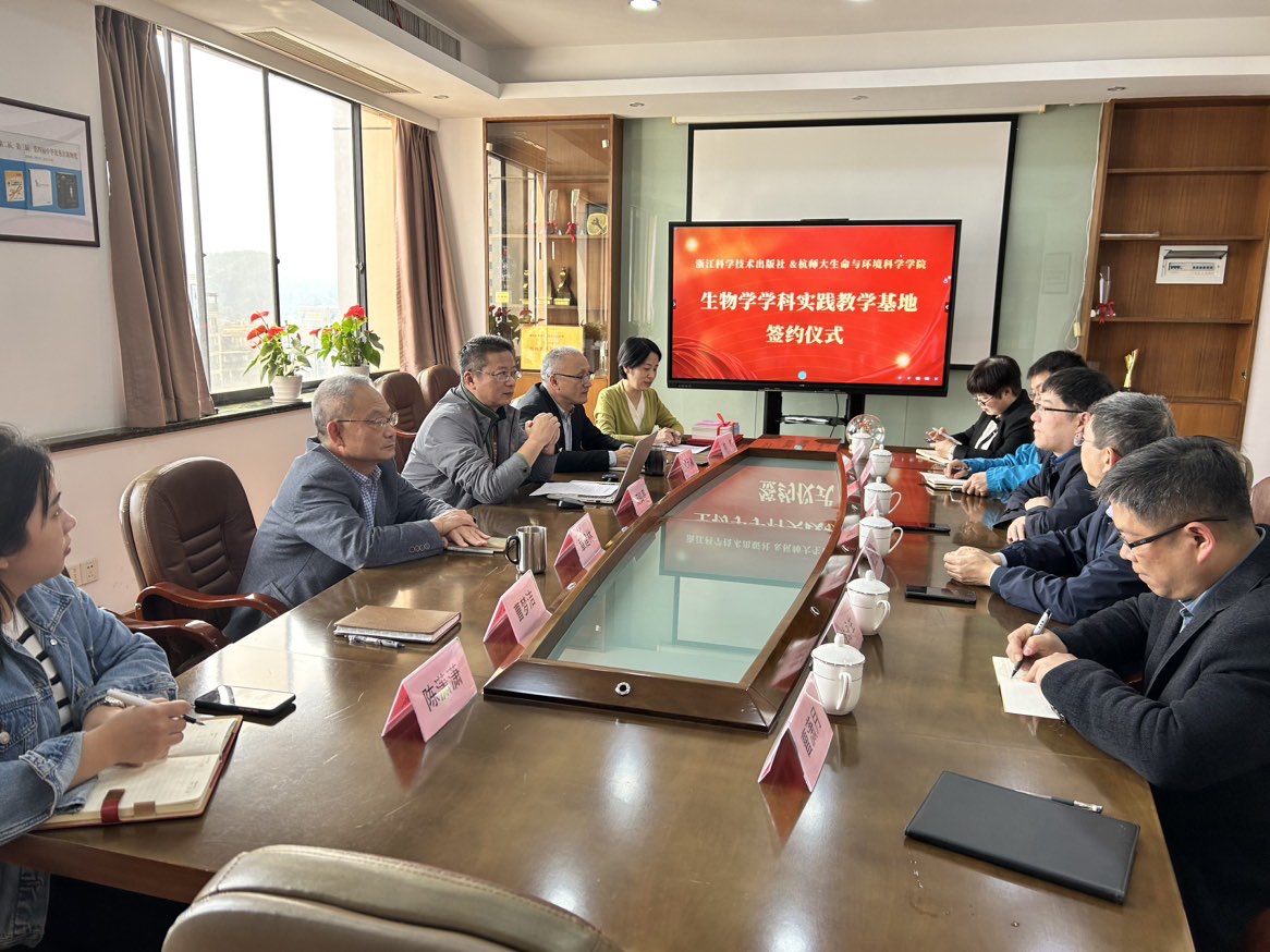 4月26日下午,国产a片 党政班子领导、生物科学系主任和相关科室主任应邀前往浙江科学技术出版社参加生物学学科实践教学基地挂牌仪式。