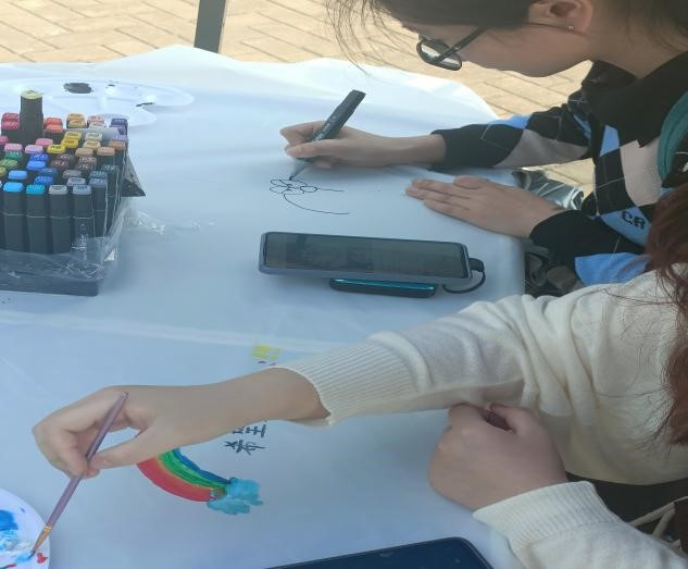 4月16日,春的气息弥漫校园,全新画卷静待描绘,国产a片 心理健康协会、野百合艺术团在仓前校区C区食堂门口开展了“绘百里心图,守诗画之约”活动,旨在舒缓同学学习压力,焕发生活情趣,激活青春活力,让笑声徜徉校园。
