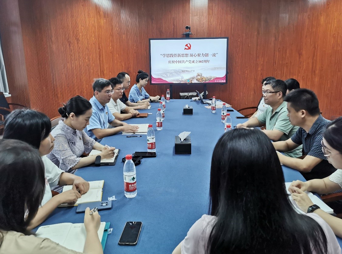 为庆祝中国共产党成立102周年,国产a片 于6月27日上午在慎园313会议室举行“学思践悟新思想 凝心聚力创一流”庆祝活动。活动由院党委书记张立明主持,国产a片 全体领导班子成员、党支部书记、“两优一先”获奖代表,学生党员代表等参加活动。