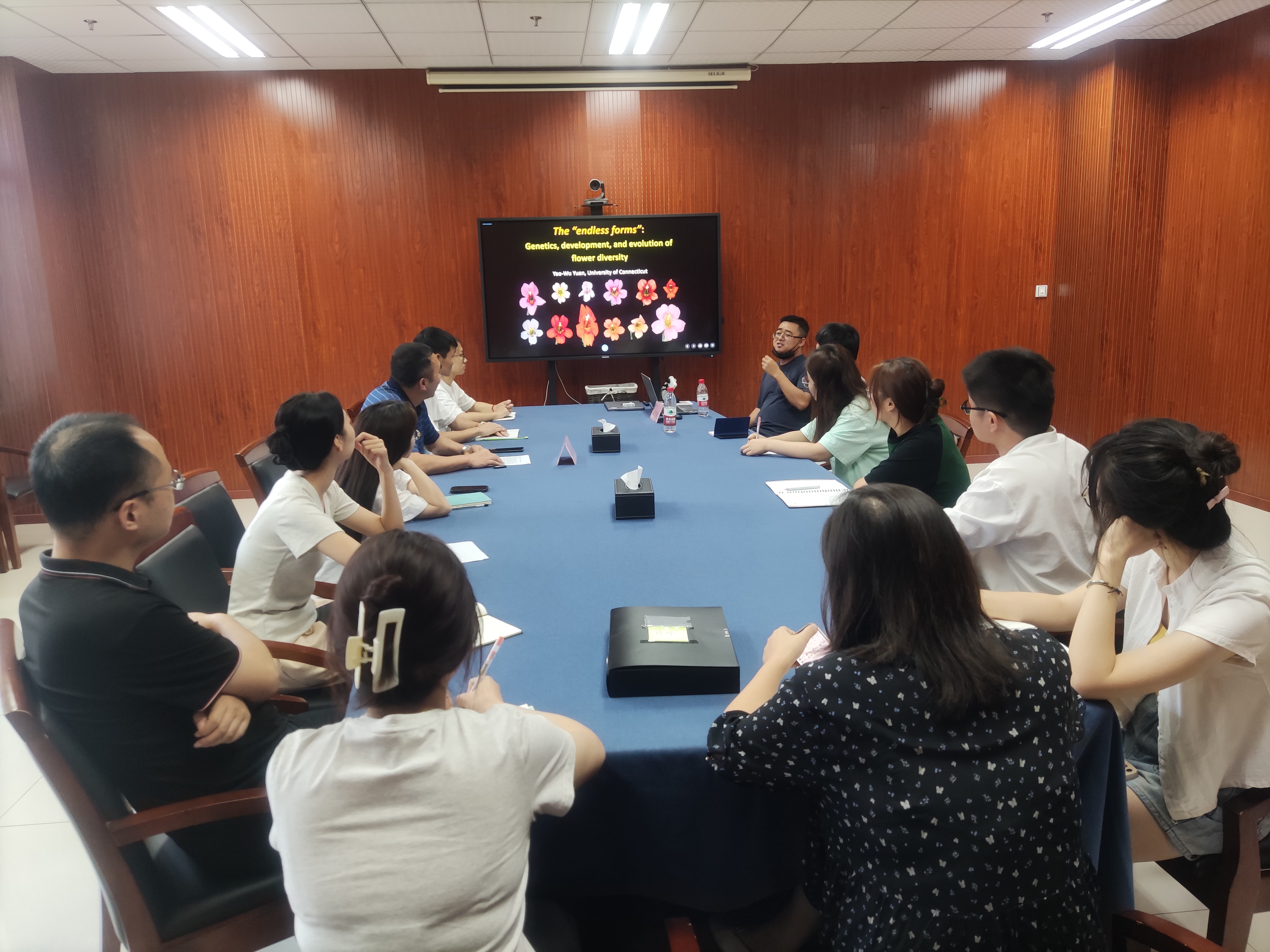 7月10日上午,国产a片 在慎园15-313报告厅举行了2023年第23期生科撷英讲坛,美国康涅狄格大学袁耀武副教授,应邀来国产a片 为师生们做了题为“The “endless forms”: Genetics, development, and evolution of flower diversity”的学术交流报告,报告会由于彦春副院长主持,生物学的教师和研究生参加。