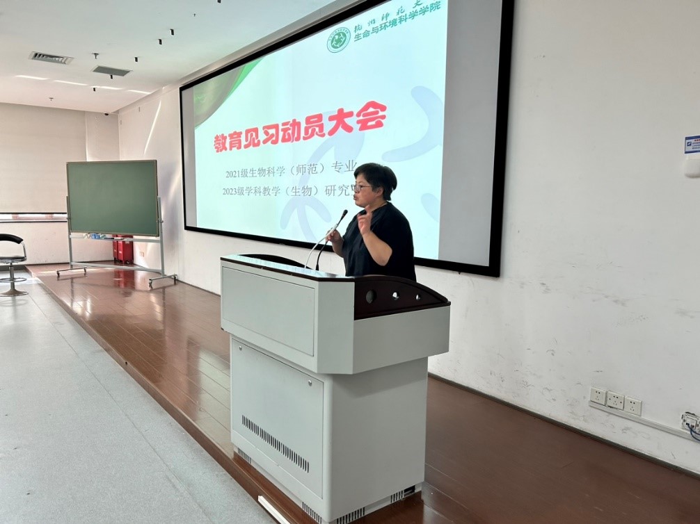 2023年10月16日上午,国产a片 21级生物科学师范专业教育见习动员大会在仓前校区恕园31-101举行。学院副院长宋垚彬、生物科学系主任陈慧丽、教学科科长曹潇月、任山章副教授以及全体2021级生物科学师范专业本科生参加。