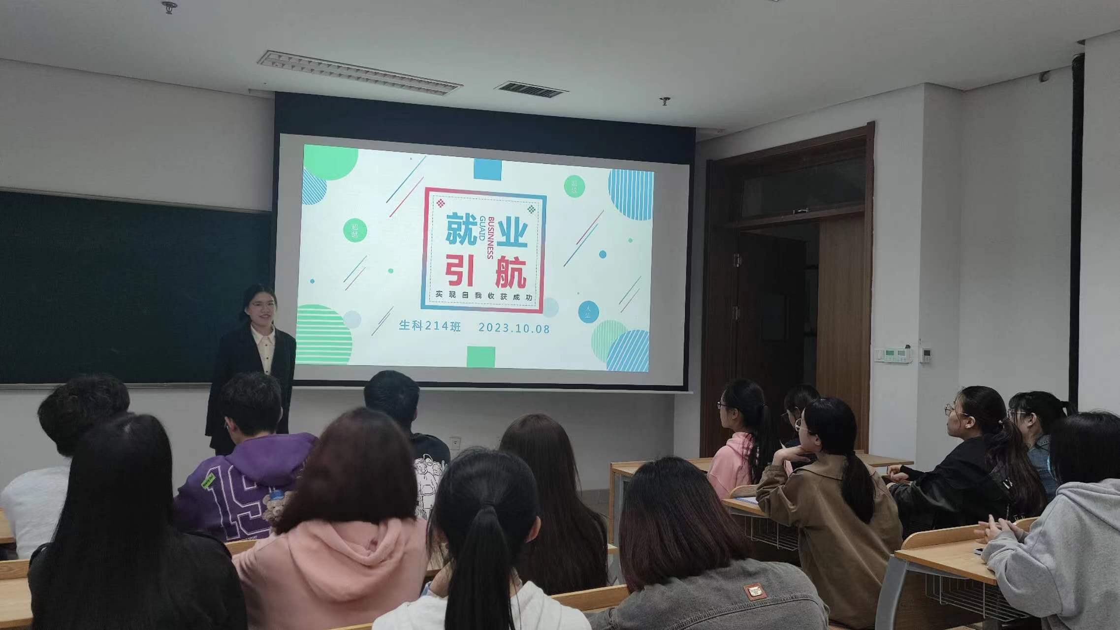 2023年10月8日,生科214团支部在国产a片 仓前校区慎园1号楼203教室举办“就业引航”主题班会。此次班会分为“认识自我、认识环境、职业规划、执行计划”四个部分。