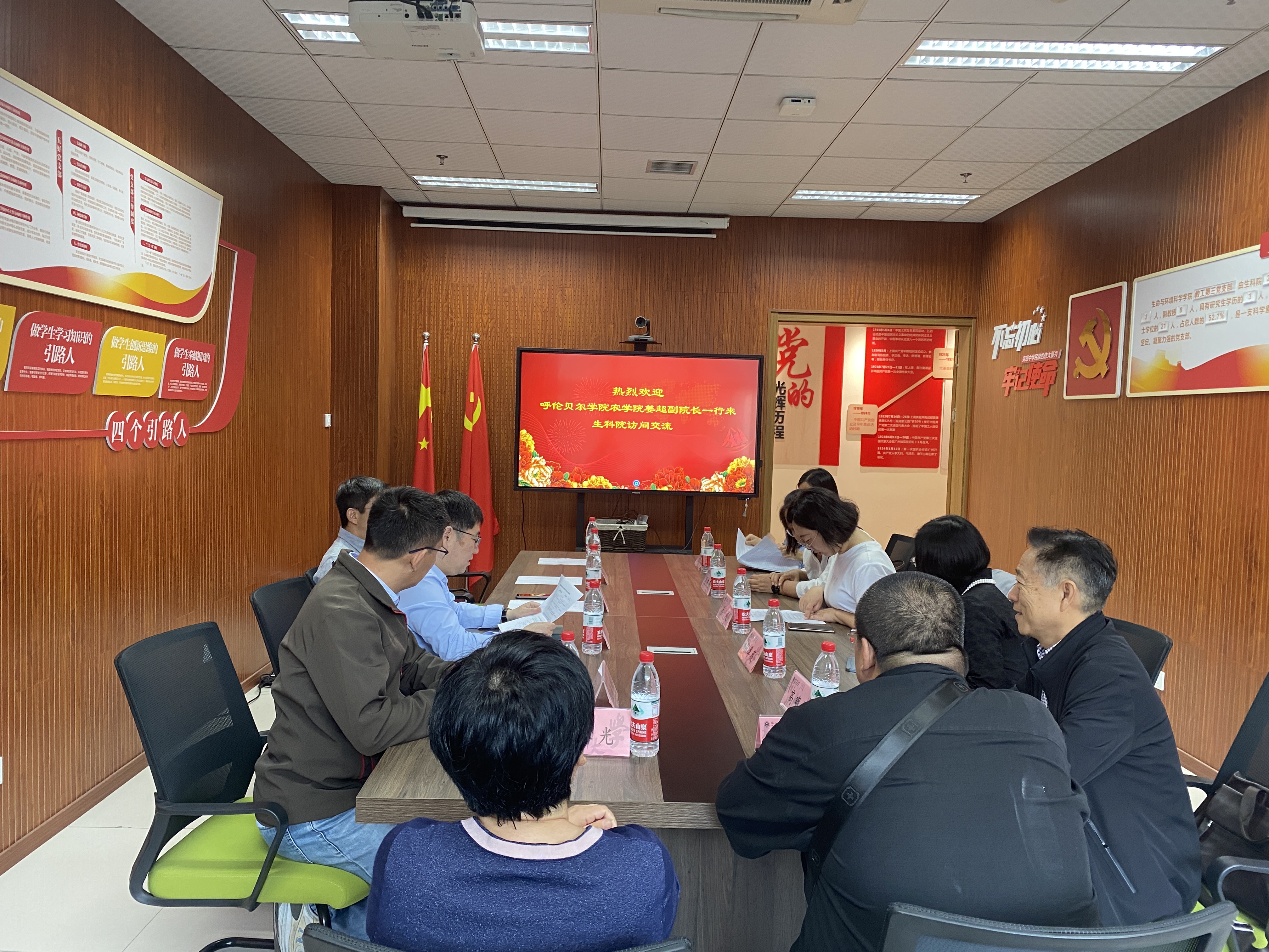 10月31日,呼伦贝尔学院农学院姜超副院长一行来国产a片 访问交流。国产a片 院长薛大伟、院党委书记张立明、副院长宋垚彬、院党委委员钱永生参加座谈,双方就各学院历史、党建建设、师资队伍、专业建设、学科科研、实验室建设、学生培养等方面进行了深入交流和探讨。