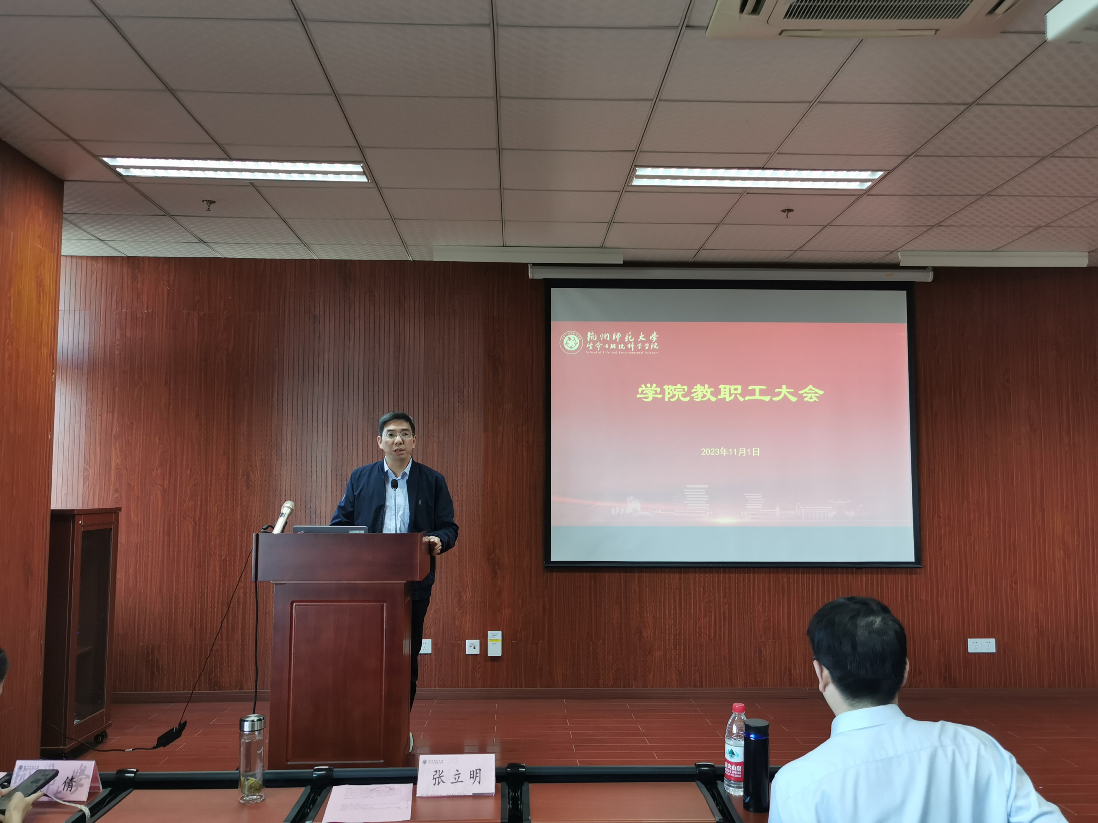 2023年11月1日下午,国产a片 召开全体教职工大会,集体学习贯彻习近平新时代中国特色社会主义思想。此次会议由党委副书记王倩主持。