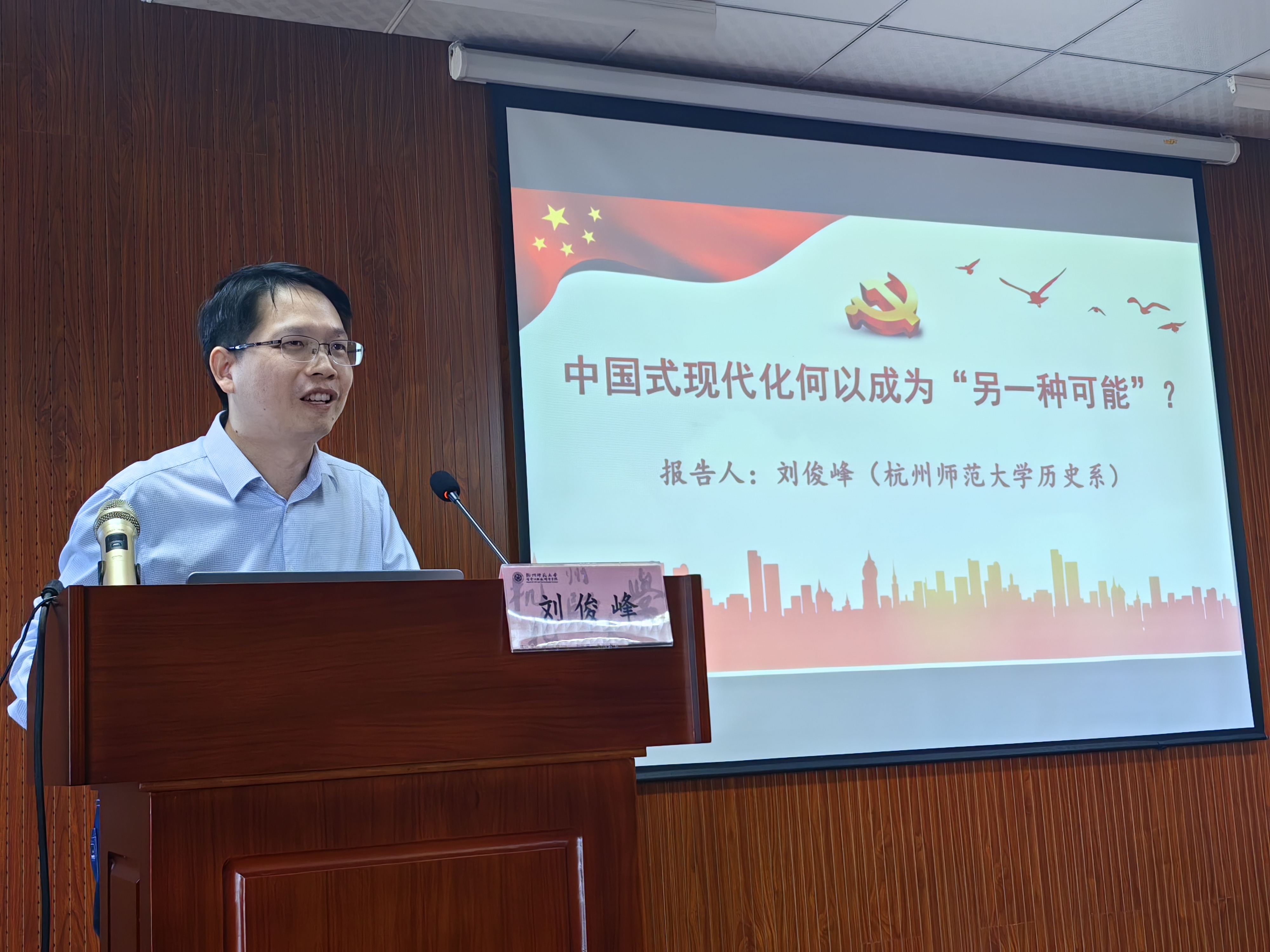 此次学习邀请校宣讲团成员刘俊峰副教授和秦东旭博士分别进行了主题为“中国式现代化何以成为另一种可能?”和“宋韵文化自信与精神富有:宋韵文化赋能公共文化建设的实践”的宣讲。刘俊峰副教授指出中国特色社会主义的发展路径和现代化建设是在中国独特的历史和文化传统背景下,提供的一种全新的现代化探索。广大教师要了解中国式现代化的独特之处,坚持党的领导和中国特色社会主义制度的重要性,同时也鼓励大家积极创新,为建设国家现代化道路添砖加瓦。