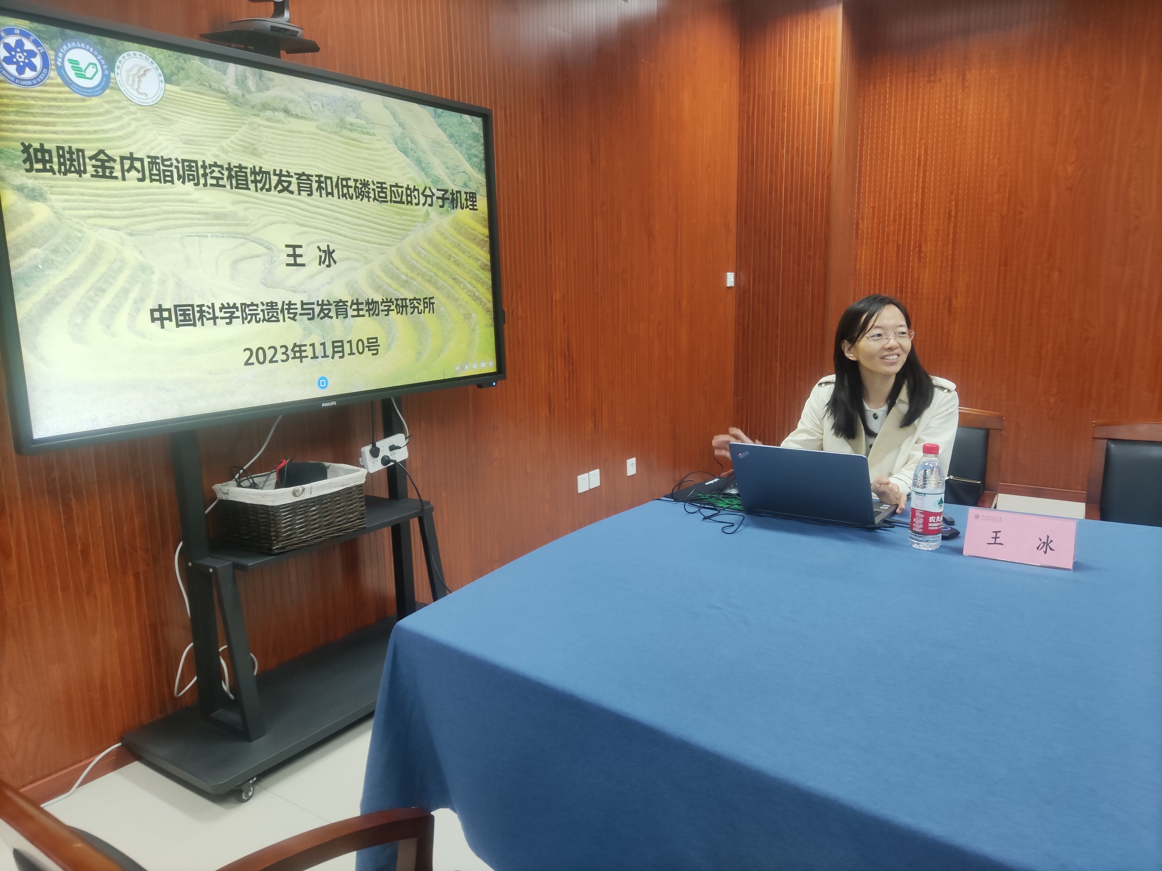 11月10日上午,国产a片 在慎园15-313会议室举行了2023年第27期生科撷英讲坛,国家自然科学基金委优青获得者、中国科学院遗传与发育生物学研究所王冰研究员,应邀来国产a片 为师生们做了题为“独脚金内酯调控植物发育和低磷适应的分子机理”的学术报告,报告会由于彦春副院长主持,生物学的教师和研究生参加。