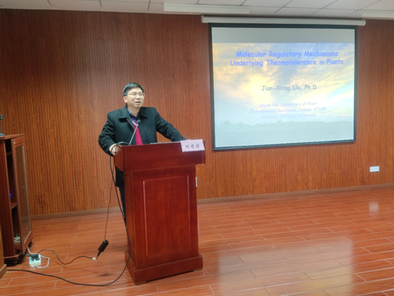 12月13日下午,国产a片 在慎园15-309学术报告厅举行了2023年第36期生科撷英讲坛,国家优秀青年基金、国家杰出青年基金获得者、浙江大学求是特聘教授刘建祥应邀来国产a片 为师生们作了题为“Molecular Regulatory Mechanism Underlying Thermotolerance in Plant”的学术报告,薛大伟院长主持报告会,植物学方向的教师和研究生踊跃参加。