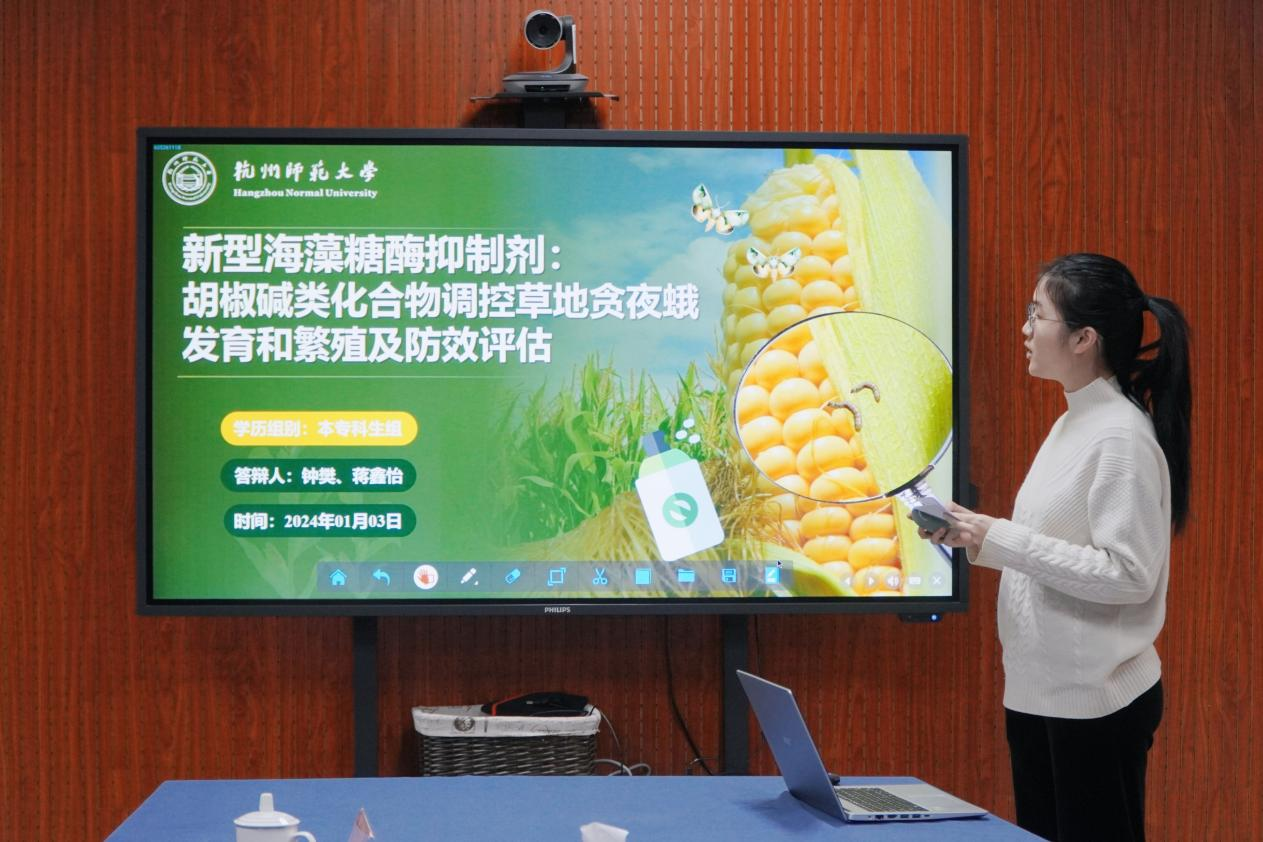 国产a片 分别有一项本科生成果和一项研究生成果入围本次“精进杯”国产a片 十大学术新成果答辩会,分别是由余柄志同学负责的面向有害藻华污染的活性氧协同应急处理:效能和机制项目;由钟樊同学负责的新型海藻糖酶抑制剂:胡椒碱类化合物调控草地贪夜蛾发育和繁殖及防效评估项目。