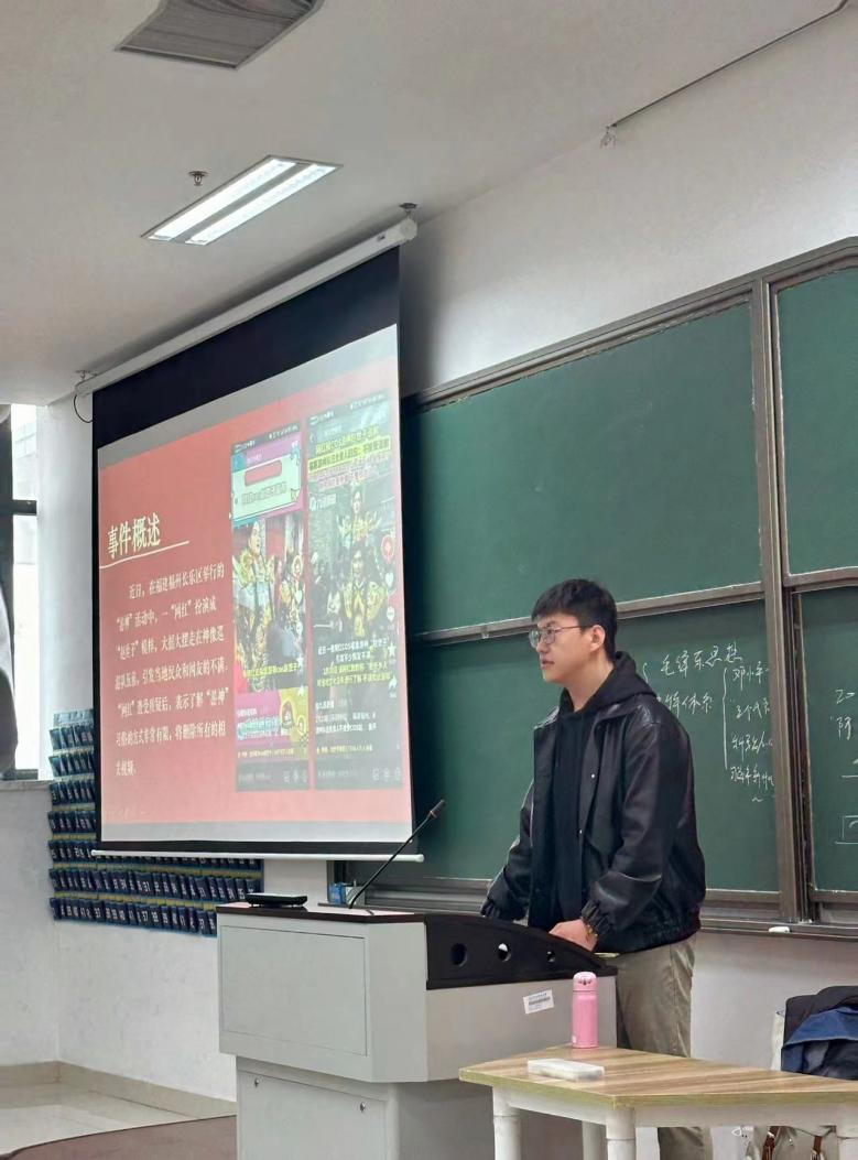 2024年3月20日晚,周静仪同学在慎园1号楼进行以“青年当勉励,莫悔来时路”为题的演讲。