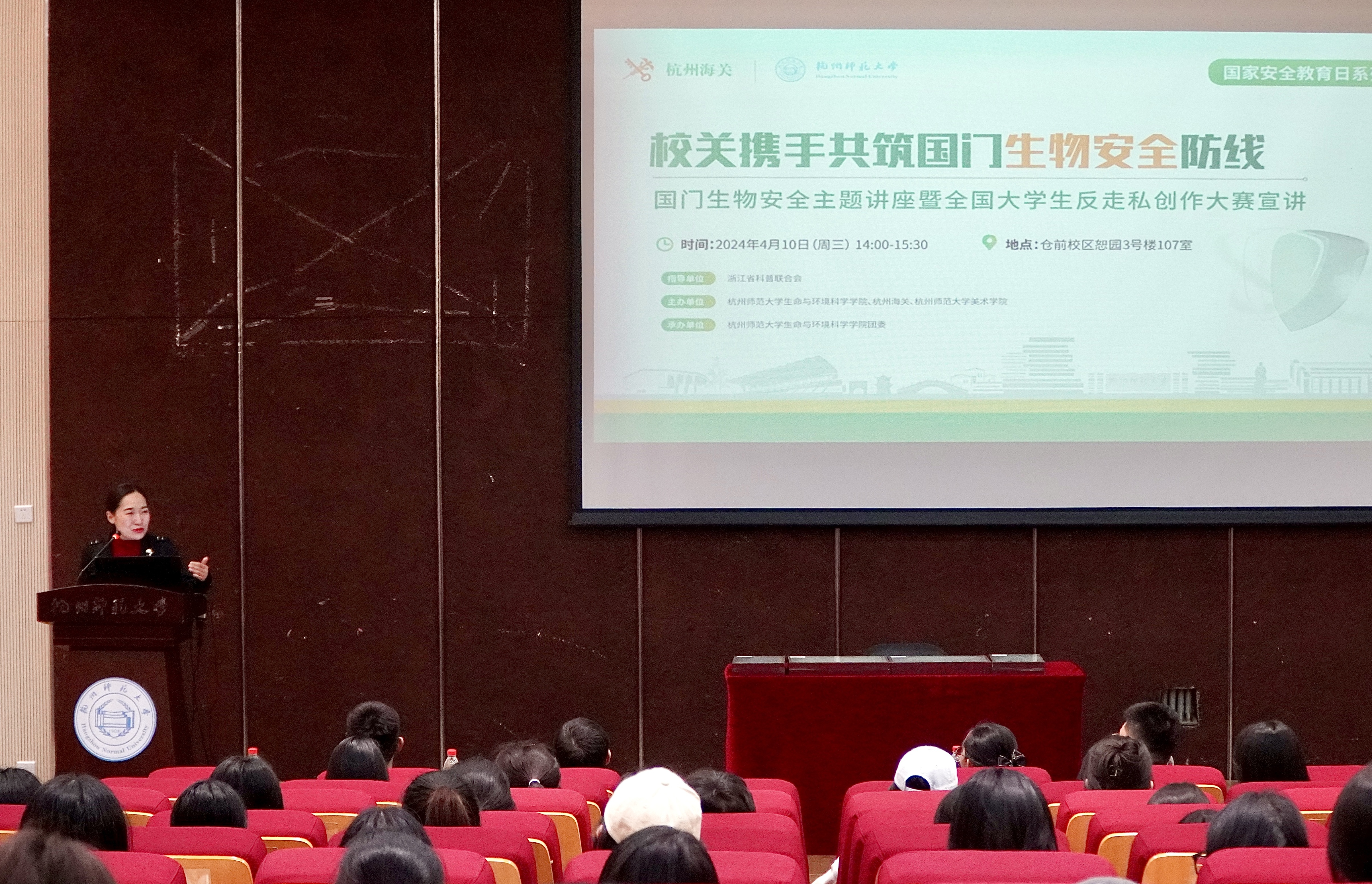 在习近平总书记创造性提出总体国家安全观10周年和第九个“4·15”全民国家安全教育日到来之际,由浙江省科普联合会指导,国产a片 、杭州海关等部门联合开展的“校关携手共筑国门安全防线”——生物安全主题宣传讲座在国产a片 仓前校区拉开帷幕。