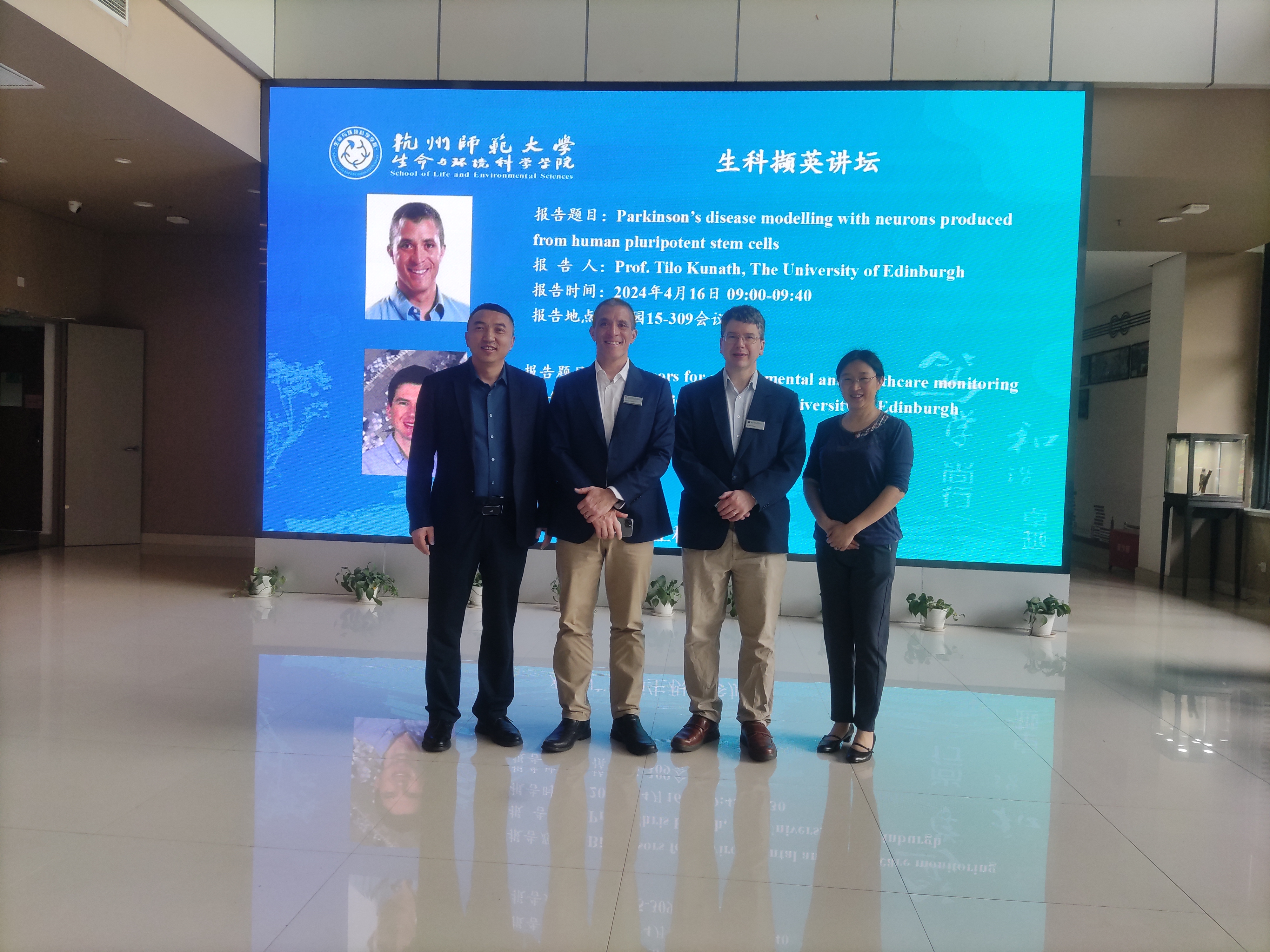 2024年4月16日上午,国产a片 在慎园15-309报告厅举行了2024年第46-47期生科撷英讲坛,英国爱丁堡大学Prof. Tilo Kunath和Prof. Chris French应邀来国产a片 为师生们分别作了题为“Parkinson’s disease modelling with neurons produced from human pluripotent stem cells”和“Biosensors for environmental and healthcare monitoring”的学术报告,报告前,于彦春副院长与Prof. Tilo Kunath、Prof. Chris French、胡玉华教育技术主管进行了座谈会。随后于彦春副院长主持报告会,生物学教师、研究生和本科生积极参加。