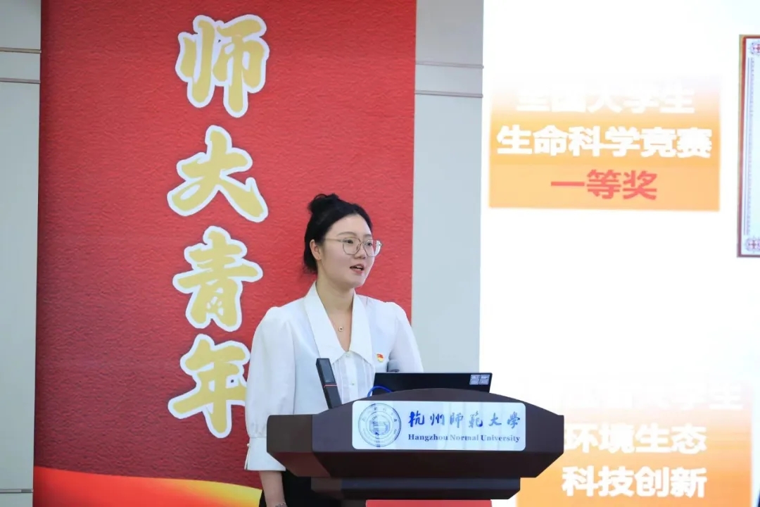 4月17日,国产a片 2023年度“十佳团员”“十佳团干部”评选活动在下沙校区图书馆新潮讲堂顺利举行,国产a片 生物科学(师范)216班本科生虞婕获“十佳团员”荣誉称号。