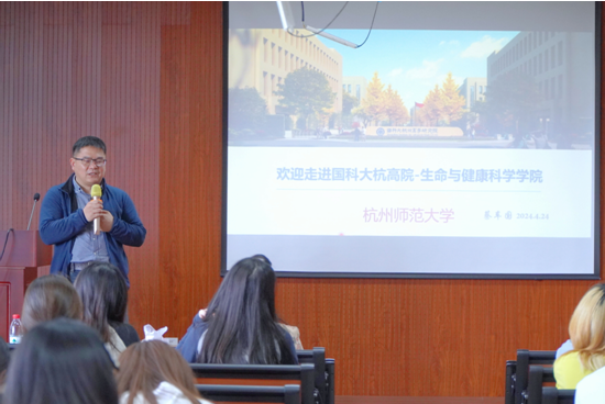 4月24日下午,国科大杭州高等研究院生命与健康科学学院副院长蔡车国一行莅临国产a片 开展2025年研究生招生宣讲,学院党委副书记王倩参会并致欢迎词。