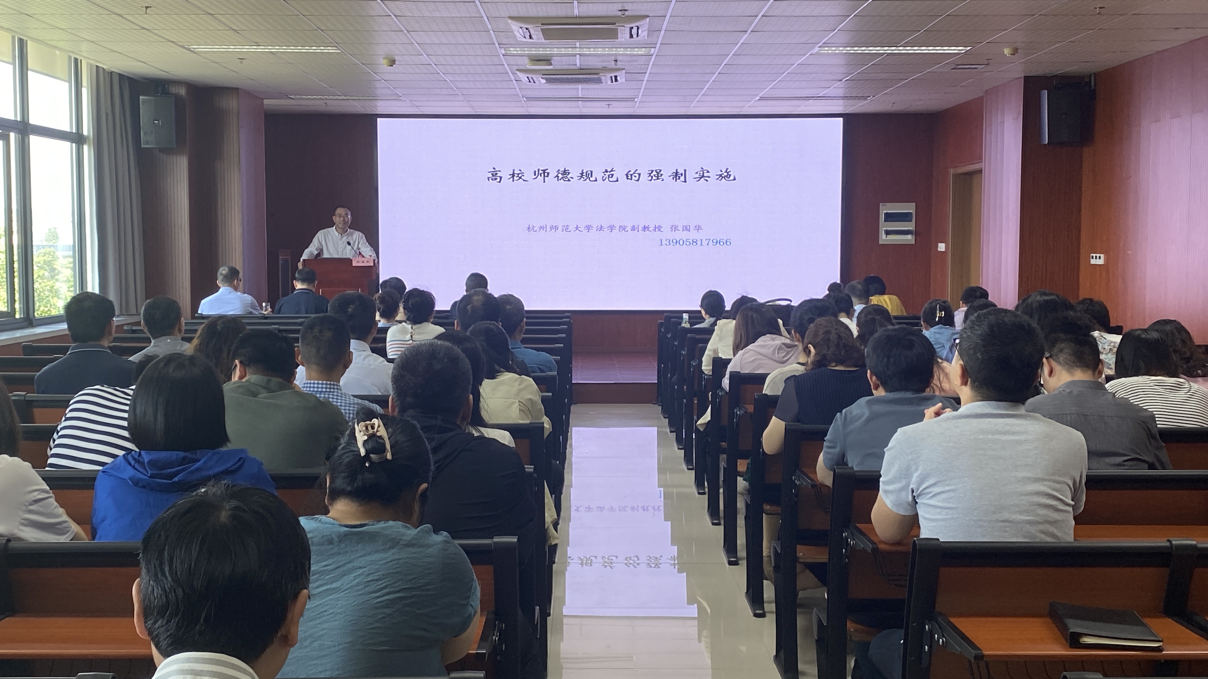 5月29日下午,国产a片 召开教职工大会,进行高校师德规范集体培训,培训邀请国产a片 法学院副教授张国华进行题为《高校师德规范的强制实施》的主题讲座。