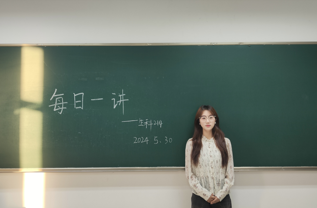 2024年5月30日,生科214班的马伍同学在慎园1号楼218教室进行了以“践行五四精神,唱响青春之歌”为主题的每日一讲。