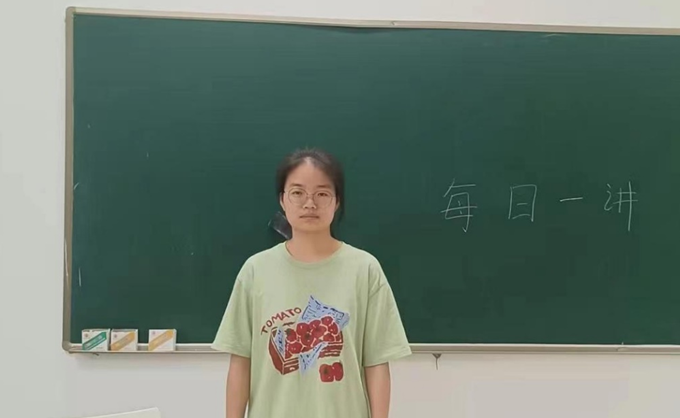5月30日,环工211班侯小玉在慎园1号楼107教室,以“践行五四精神,唱响青春之歌”为主题,进行每日一讲宣讲活动。
