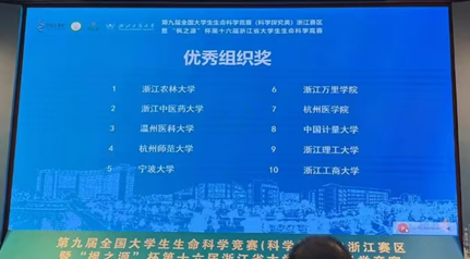 全国大学生生命科学竞赛为浙江省A类学科竞赛,内容丰富,认可度高。本次竞赛要求学生围绕生命科学相关领域的任何科学问题,开展自主性设计实验或野外调查工作,让学生了解生命科学的发展,寻找解决生命科学问题的有效方法以及防控措施。旨在培养大学生的社会责任感、创新意识、团队精神和实践能力,掌握与生命科学领域有关的调查、监测、检验、检疫、诊断、分析、预防和控制的基本实验技术与方法。