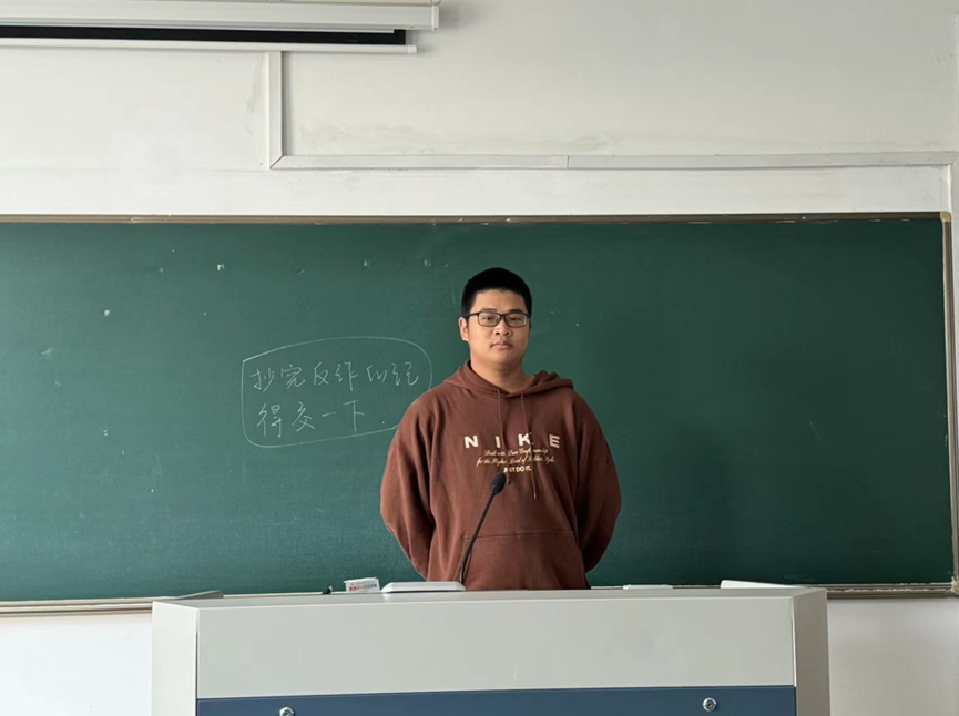 2024年10月8日上午,陈潇凡同学在B号楼111教室进行了以《青春献礼祖国,奋进书写华章》为主题的演讲。