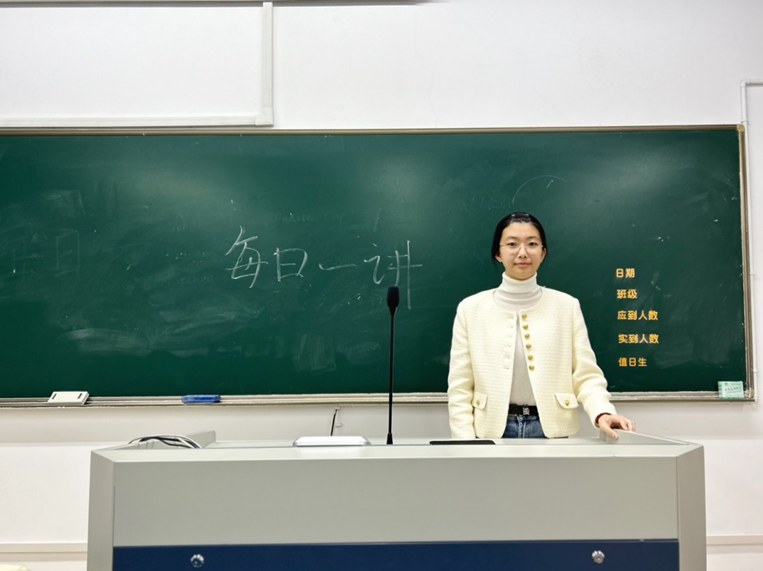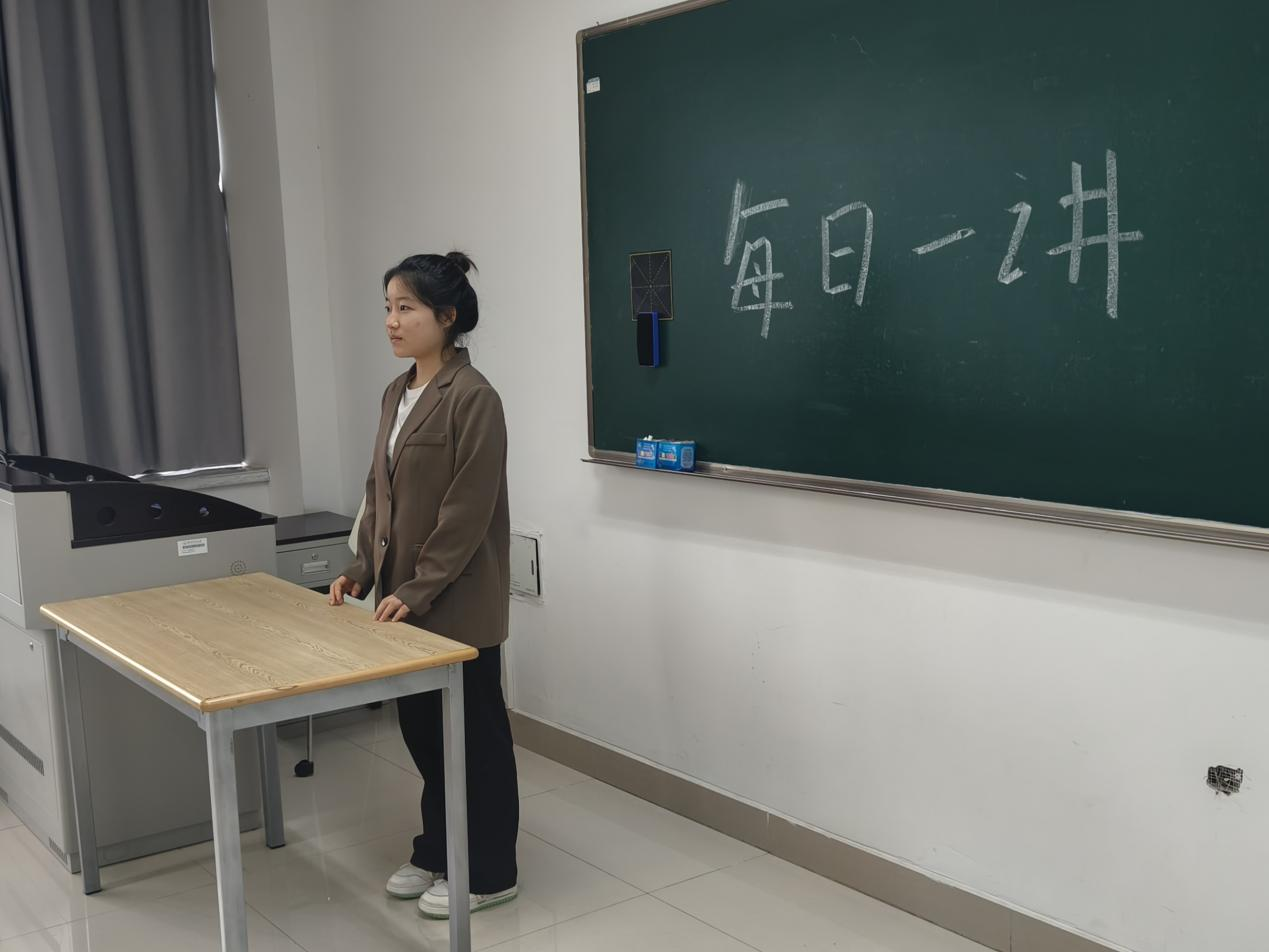 2024年10月22日,在国产a片 仓前校区慎园1号楼教室中,吕兰心同学在课前向同学们做以“青春献礼祖国,奋进书写华章”为主题的每日一讲活动。