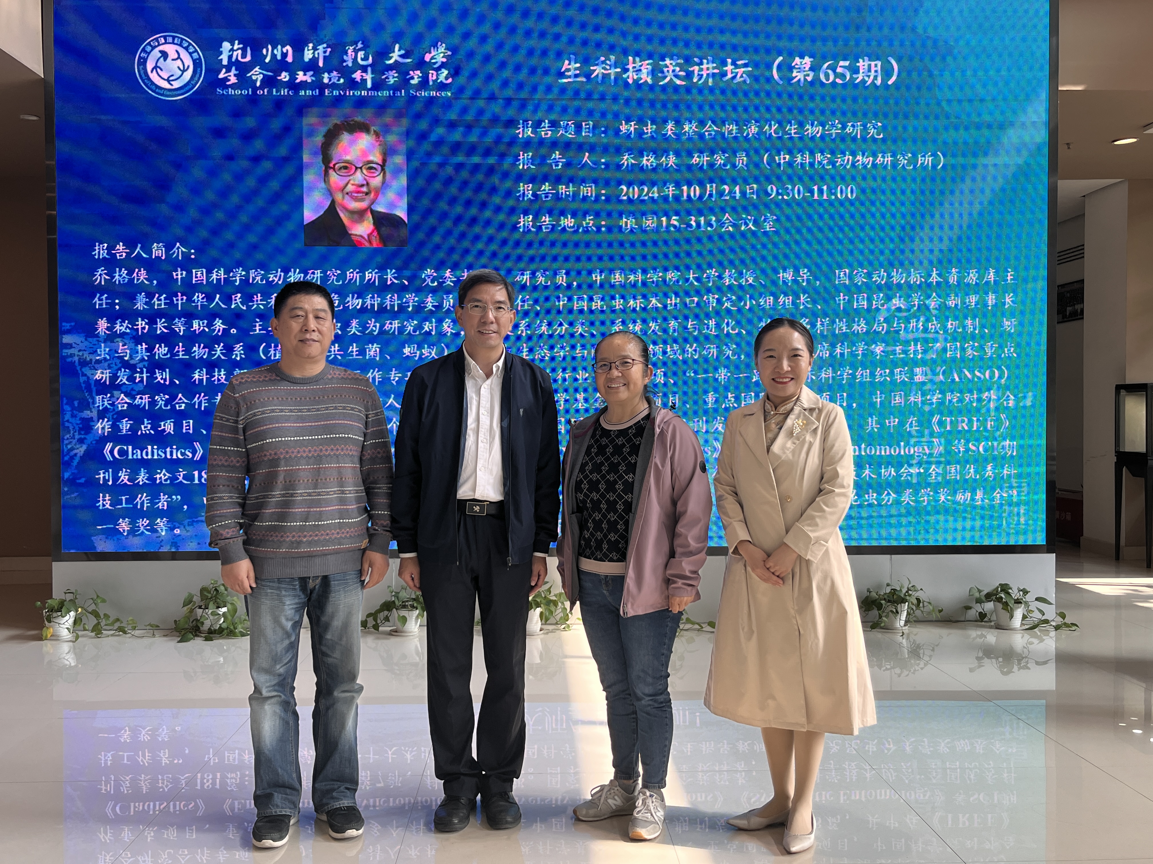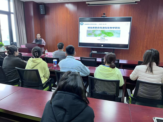 10月24日,中国科学院动物研究所所长、党委书记乔格侠研究员应邀访问国产a片 并做学术报告。本次报告会,乔格侠研究员作了题为“蚜虫类整合性演化生物学研究”的学术报告,从传统的形态分类到DNA条形码,从线粒体基因组到全基因组,从蚜虫个体性状到虫瘿特征及内生菌构成,构建了蚜虫—内生菌—寄主植物的整合性生物演化体系,阐明了蚜虫与内外环境的协同演化规律。乔格侠研究员还跟学生分享了自己的科研历程,鼓励研究生要明确自己的研究目标,坚持不懈地走下去。报告会后,学院党委书记张立明向乔格侠所长介绍了学院的发展历史及学科建设等情况,参观了国产a片 标本馆及实验室、大型仪器共享平台等,王倩副书记陪同参观。