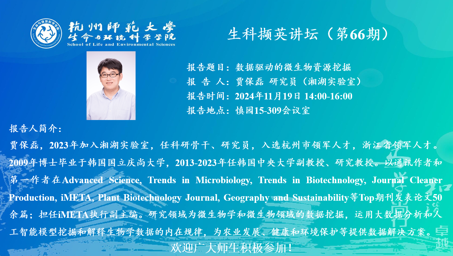 来源 : 生命与环境科学学院     作者 : 科研办     时间 : 2024-11-14     点击 : 0