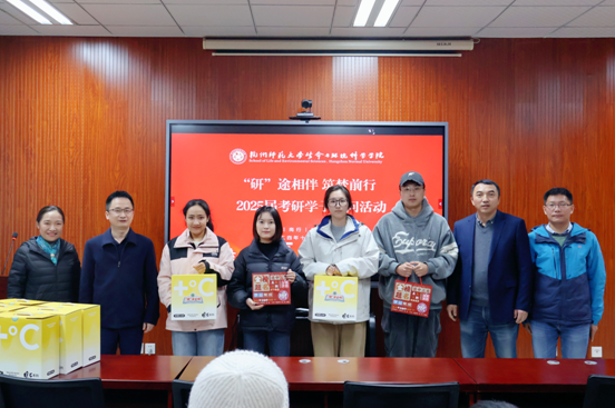 学院为全体考研学子们精心准备了文具加油包和冬日暖心加油包,学院领导们为考研学生代表分发慰问品。