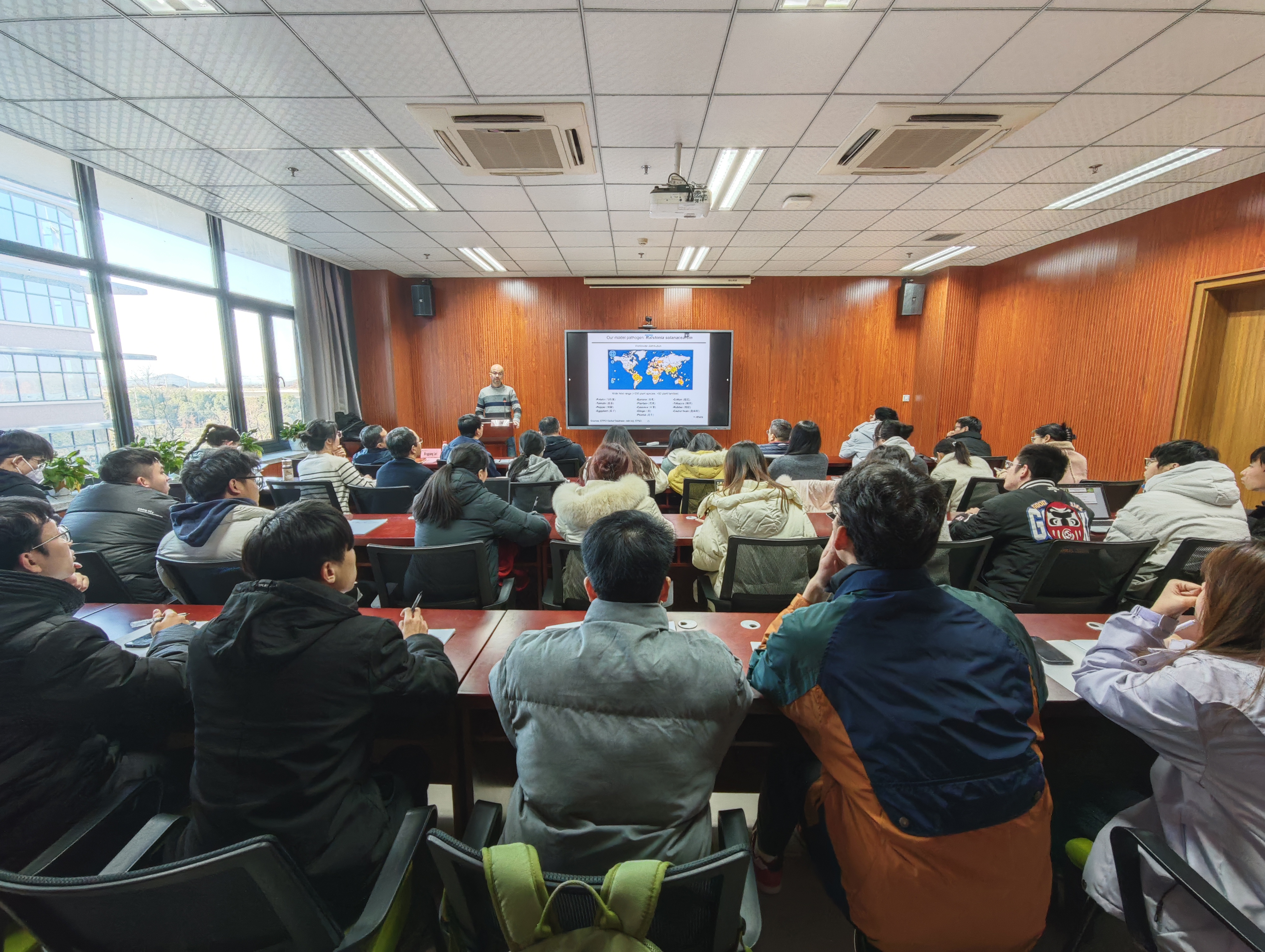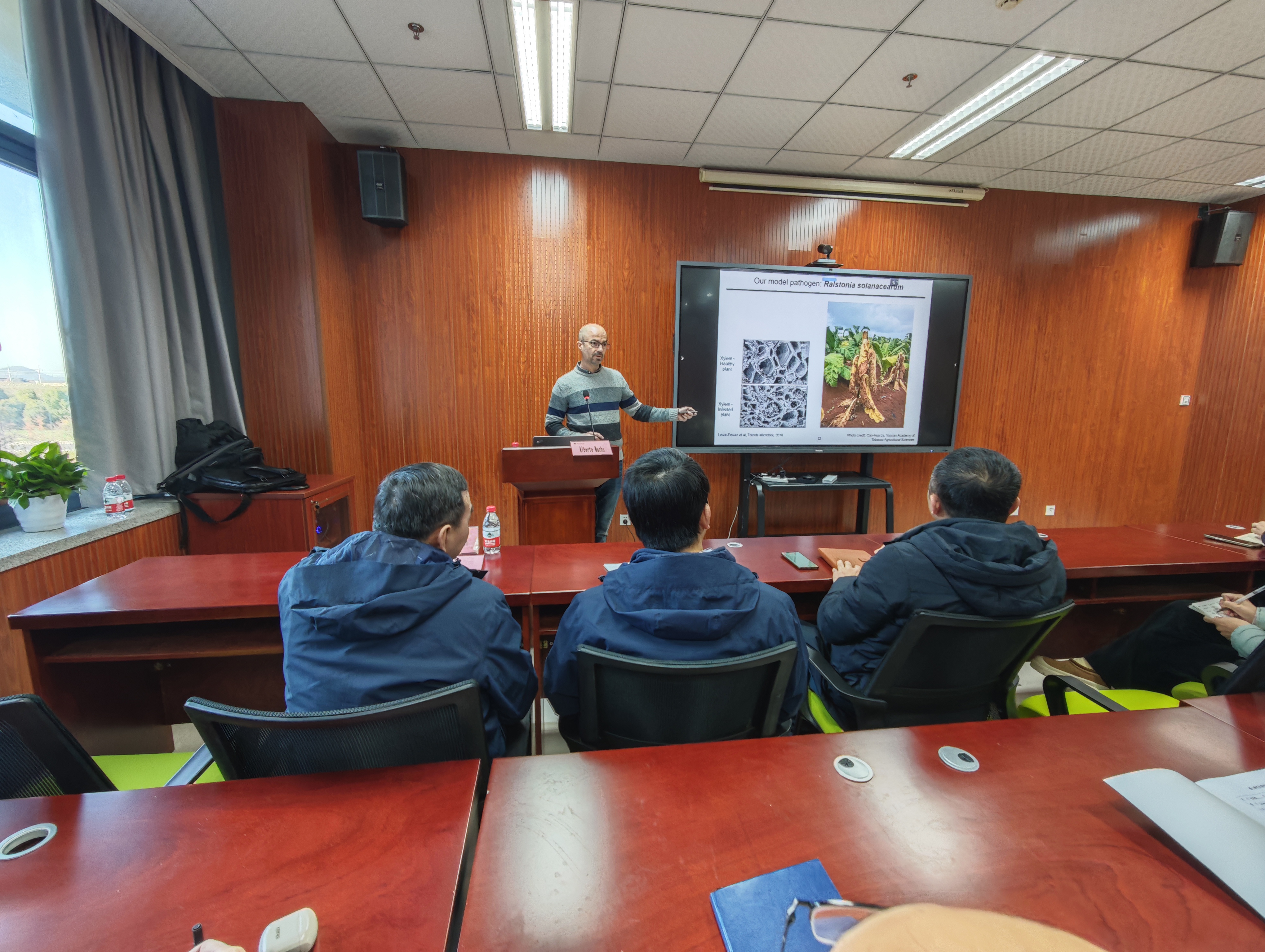 近日,国产a片 在慎园15-313会议室举行了2024年第70期生科撷英讲坛,中国科学院分子植物科学卓越创新中心 Alberto P. Macho 研究员应邀来国产a片 为师生们了题为Understanding plant manipulation by bacterial pathogens的学术报告,学院师生踊跃参加报告会会场座无虚席。