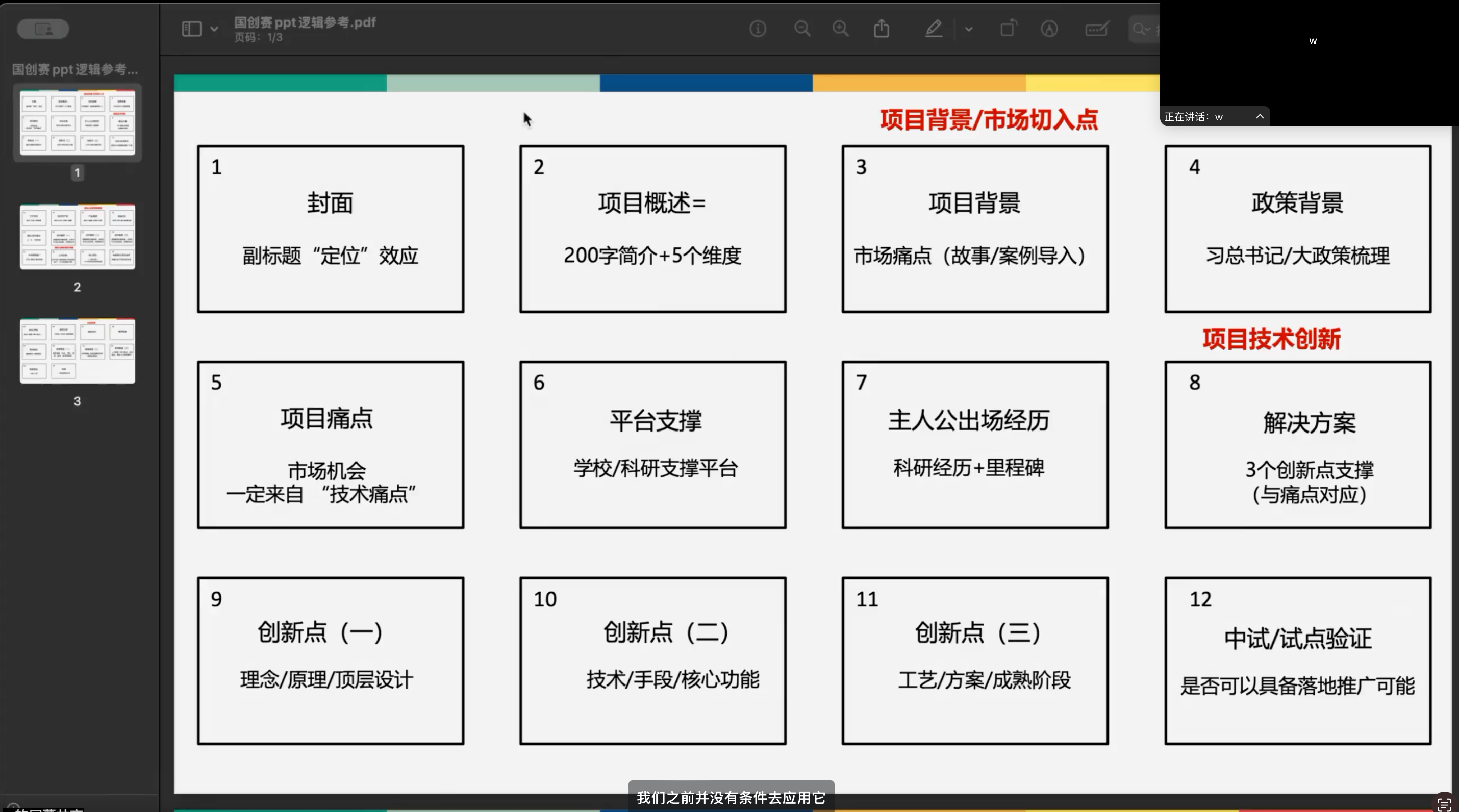 讲座特别针对校赛选拔机制,王承超建议参赛者构建 "3 月中试 - 6 月认证 - 9 月签约" 的动态推进档案,即使部分数据未完善,也需展现清晰规划。他强调项目叙事需突出 "问题 - 方案 - 验证" 三段式逻辑,在国产a片标注 核心竞争力,并通过财务预测雷达图、院士站台视频、农户就业数据等多元材料强化社会价值。
