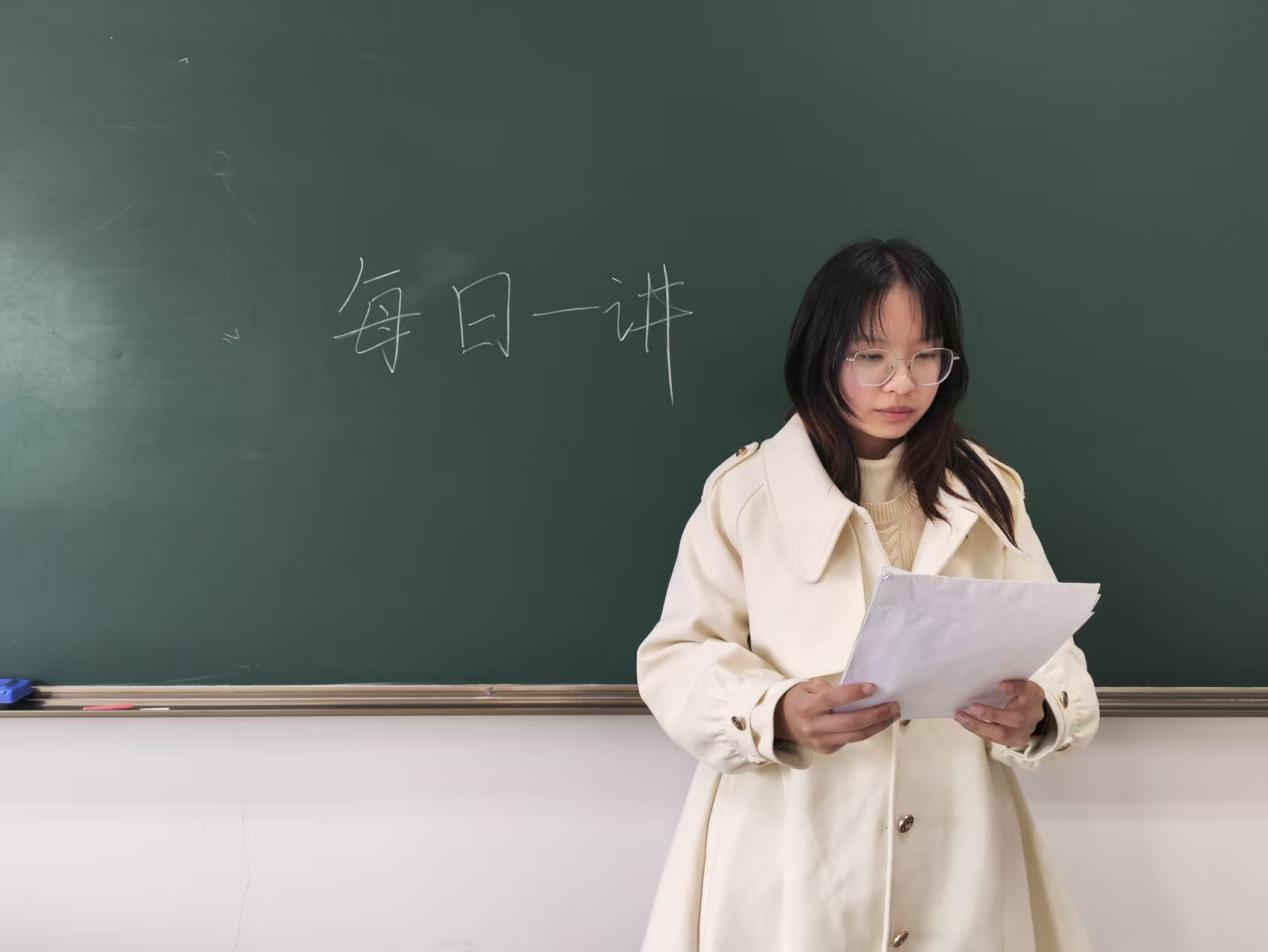 在演讲的最后,普莹同学强调:“在未来,浙江必将继续秉持文化自信,在文化传承与创新的道路上砥砺前行,让浙江文化绽放更加绚烂的光彩 ”。引起了同学们的强烈反响!