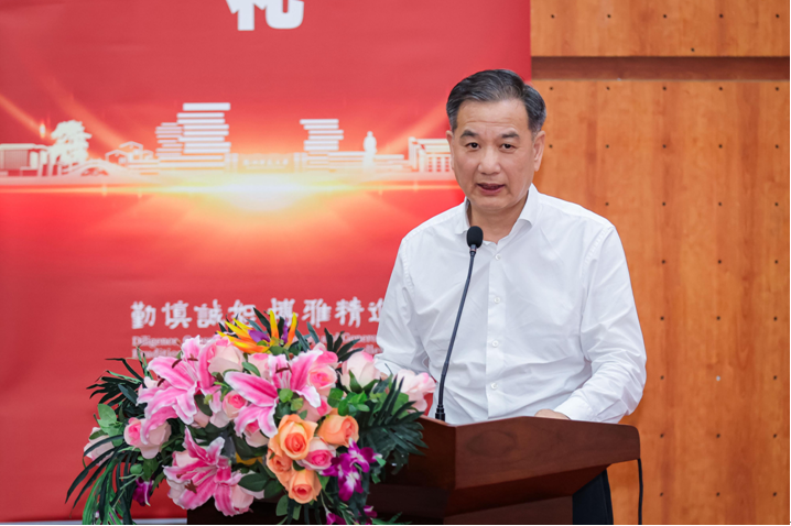 鲍学军作为校友代表讲话,向获奖学子致以热烈祝贺。他回顾道,16 年前,自己与徐博华、丁永明、方剑成三位校友共同发起 REACH 奖学金,希望以这种方式回馈母校、致敬母校。他表示,这份奖学金虽规模不大,但意义深远,是国家奖学金的有益补充,承载着 “尊重、活力、勤勉、创新、诚实”的理念。鲍学军对同学们以奖学金为目标勤奋进取的状态感到十分欣慰,表示看到了同学们用汗水铸就成绩,让奖学金从一项荣誉转化为奋斗的鼓励和见证,而这一历程赋予了奖学金真正的价值与意义。他鼓励大家打破专业局限,积极探索创新,发挥主观能动性,把握人生无限可能;在人工智能浪潮冲击教育的当下,以能力为本,锤炼综合素养。他坚信,杭师大作为浙江发展的重要推动力量,在师生们的共同努力下,必将发展越来越好,同时,REACH 奖学金也会与母校一同蒸蒸日上。
