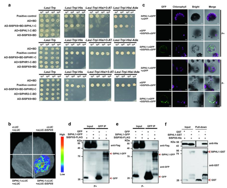 图2:SlSPX5与SlPHL1发生物理相互作用,且该相互作用不依赖于磷水平
