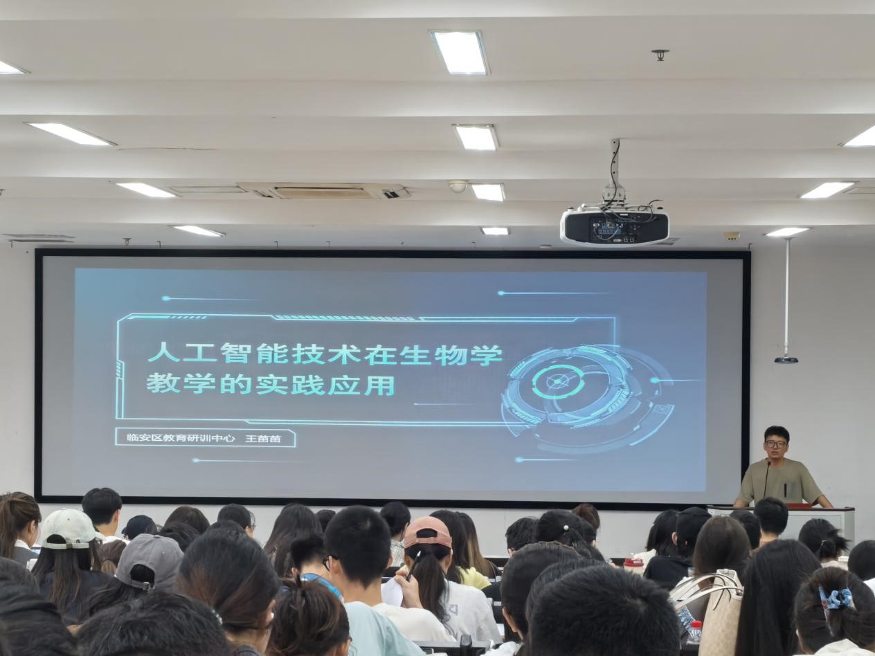 动员大会结束后,同学们旋即投入了一场充满前沿视野与实战经验的学术盛宴——由临安区教研员王苗苗老师主讲《人工智能技术在生物学教学的实践应用》专题讲座。