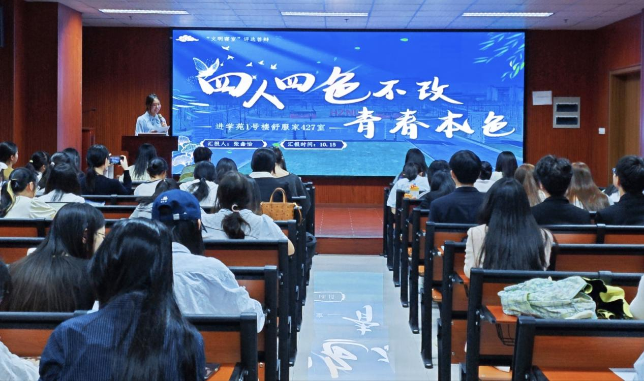 评比伊始,主持人介绍了评委并明确了评选规则。各寝室通过视频展示、现场陈述等多种方式进行答辩,从环境整洁、学业成绩、成员情谊、志愿活动等多方面展现了文明寝室的丰富内涵。整体氛围融洽,反映了同学们良好的精神面貌与和谐的集体生活。全部寝室展示完毕后,主持人宣布评比环节结束,评委打分,参会人员有序离场。