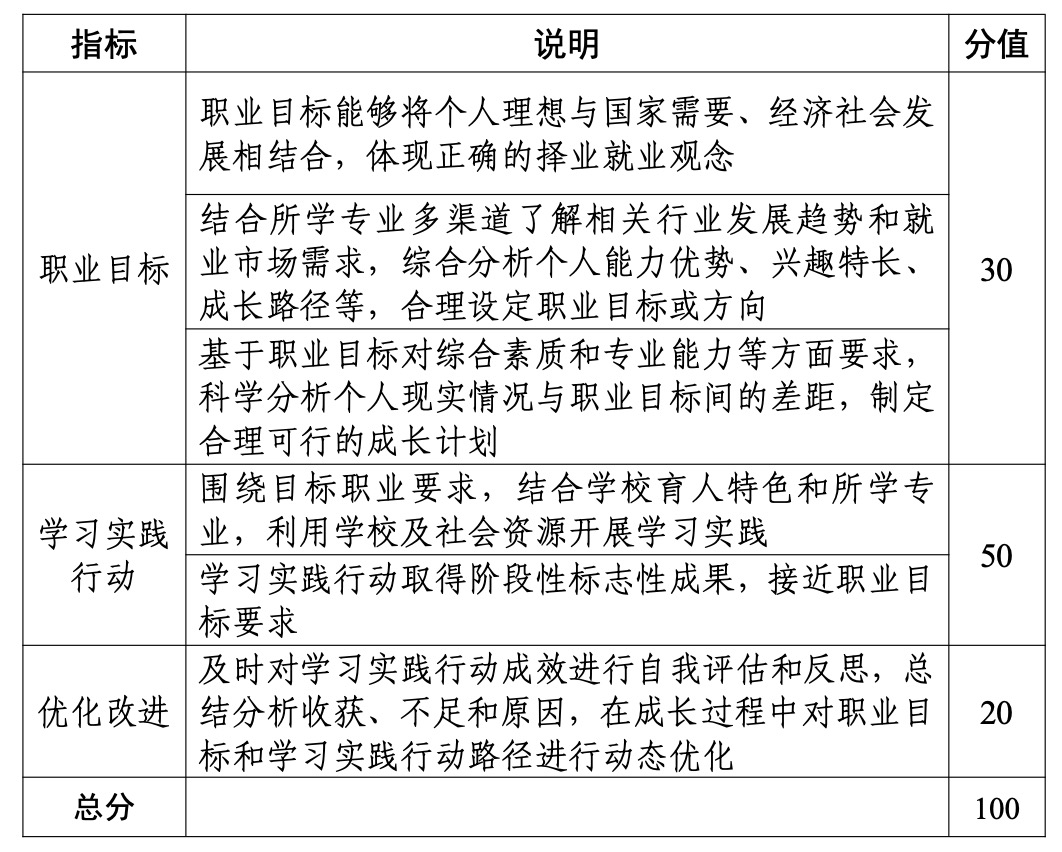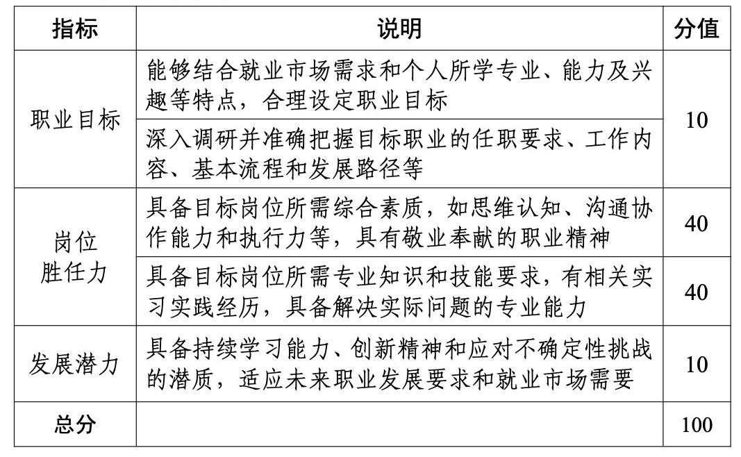 考察学生树立生涯发展理念并合理设定职业目标、围绕实现目标持续行动并不断调整的成长过程,通过学习实践提升综合素质和专业能力,体现正确的择业就业观念。